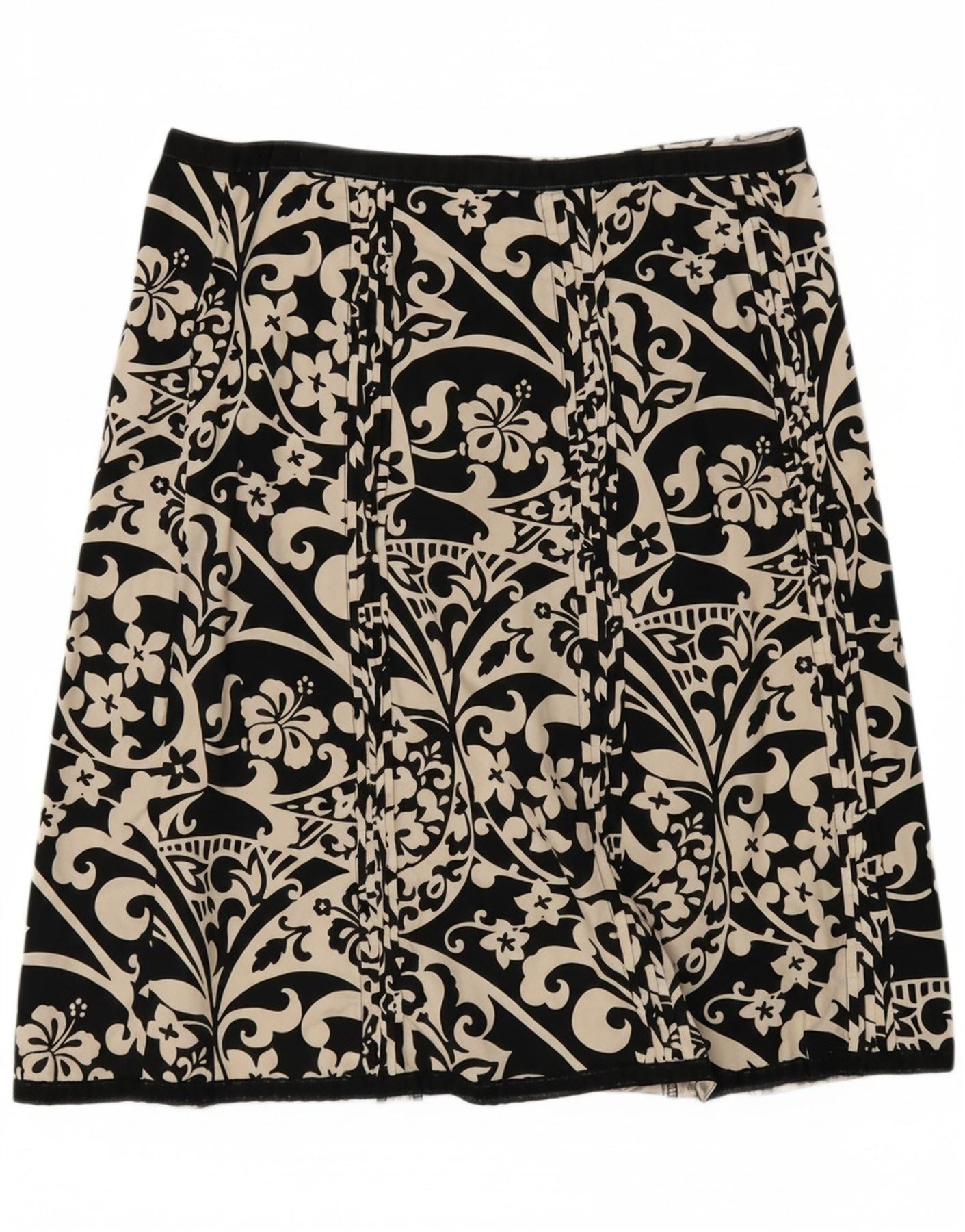 OLD NAVY Womens A-Line Skirt US 10 Large W32 Black Floral Cotton