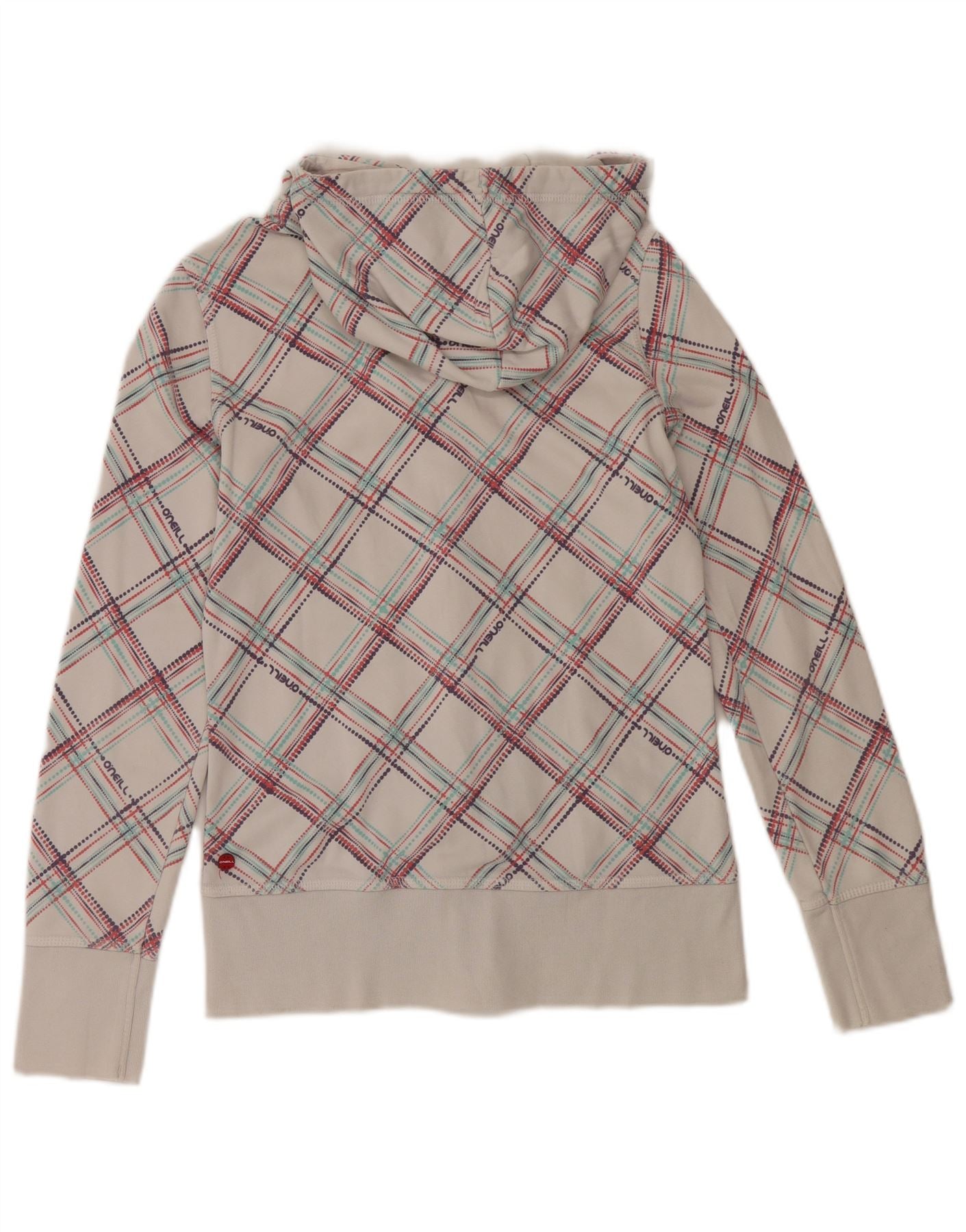 O'NEILL Womens Graphic Zip Hoodie Sweater UK 10 Small White Check Cotton