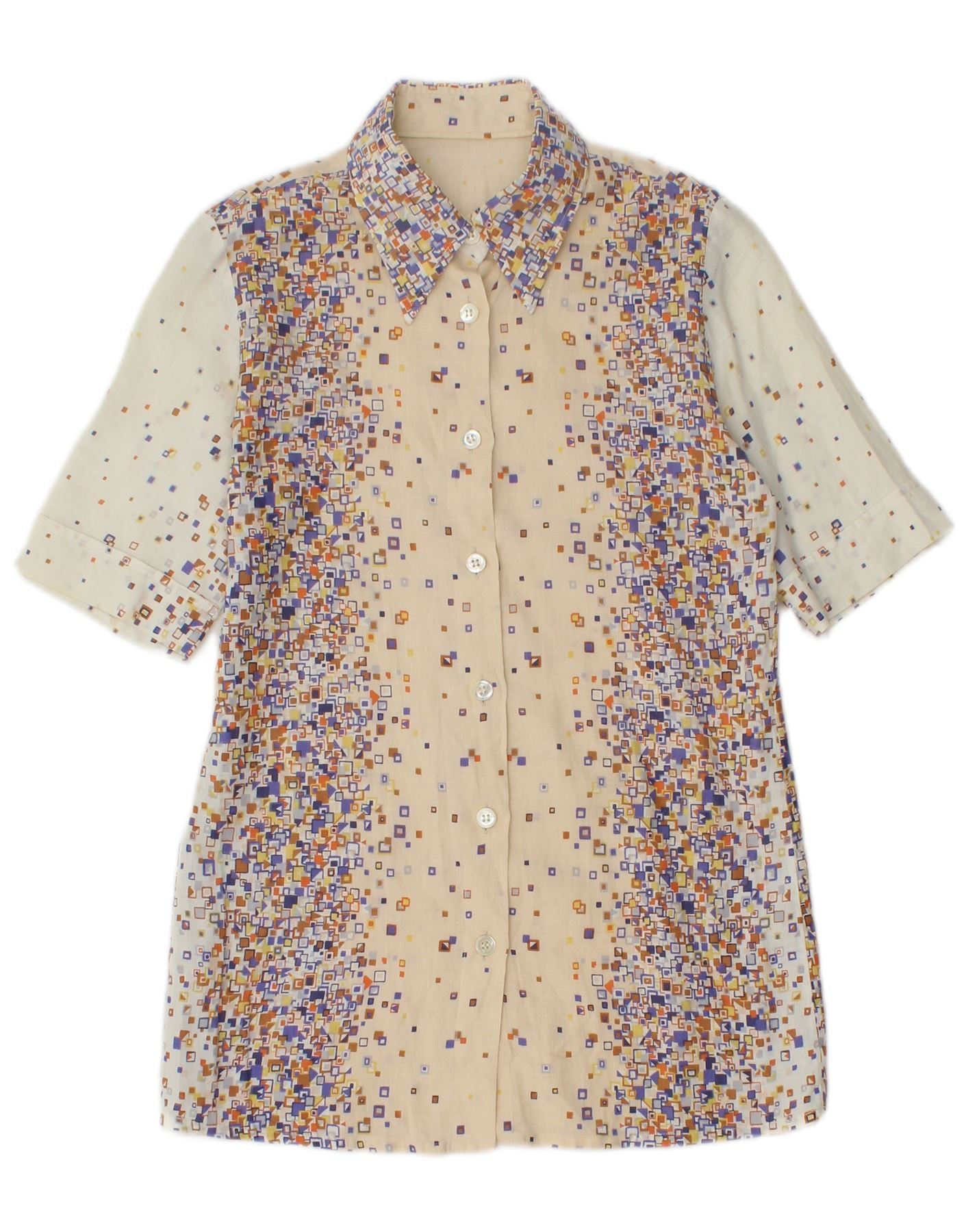Bomber VINTAGE pentru femei UK 12 Medium Off White Colorblock Viscose