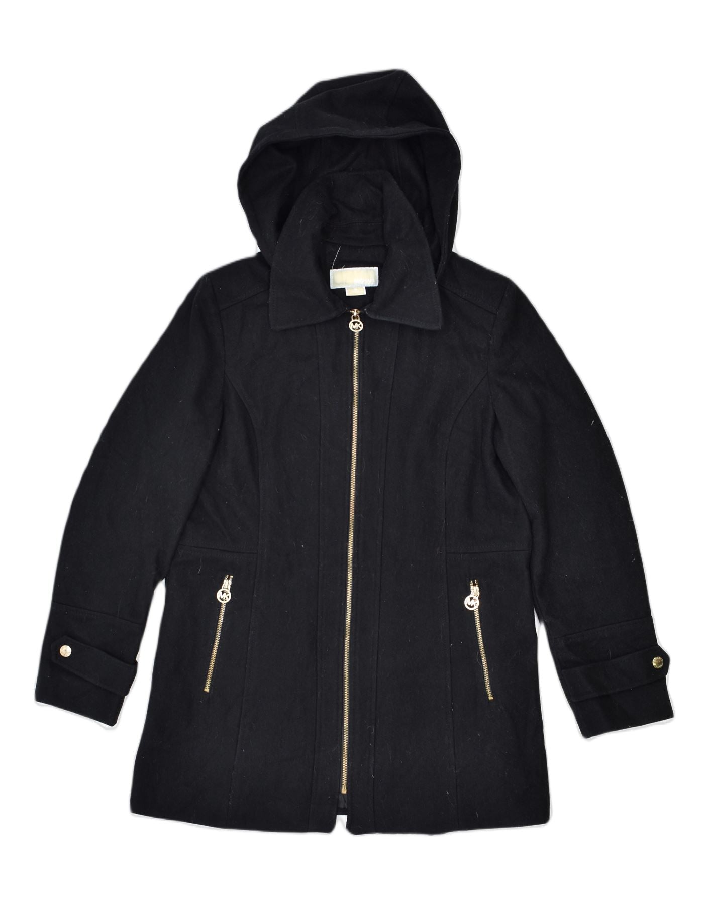 Pardesiu cu glugă pentru femei VINTAGE UK 12 Lână neagră medie
