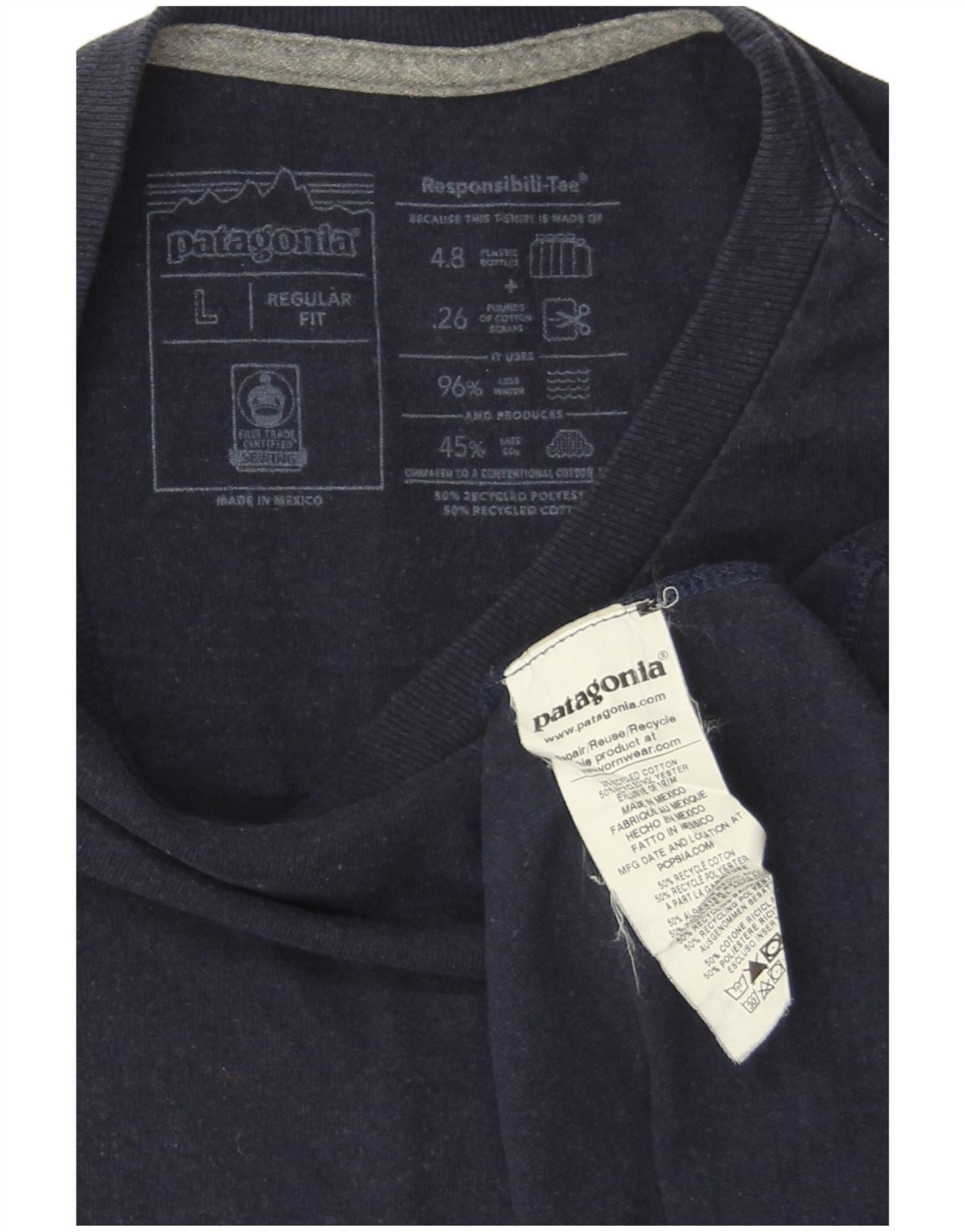 - Descriere AI: Acest tricou grafic Patagonia pentru bărbați Responsibili-Tee cu mânecă lungă este confecționat dintr-o țesătură confortabilă amestecată de albastru bleumarin. Are 50% bumbac reciclat și 50% poliester reciclat, oferind o senzație moale și respirabilă. Gâtul rotund și mânecile lungi oferă o siluetă clasică. Un mic logo Patagonia împodobește partea din față, cu un imprimeu grafic mai mare pe spate. Potrivirea sa obișnuită asigură confort ușor pentru purtarea de zi cu zi.
