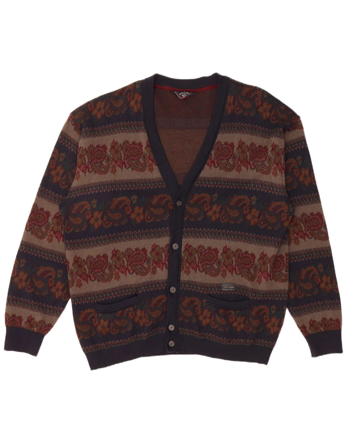 Pulover cardigan pentru bărbați PAUL & SHARK 2XL Lână nouă Paisley, albastru bleumarin