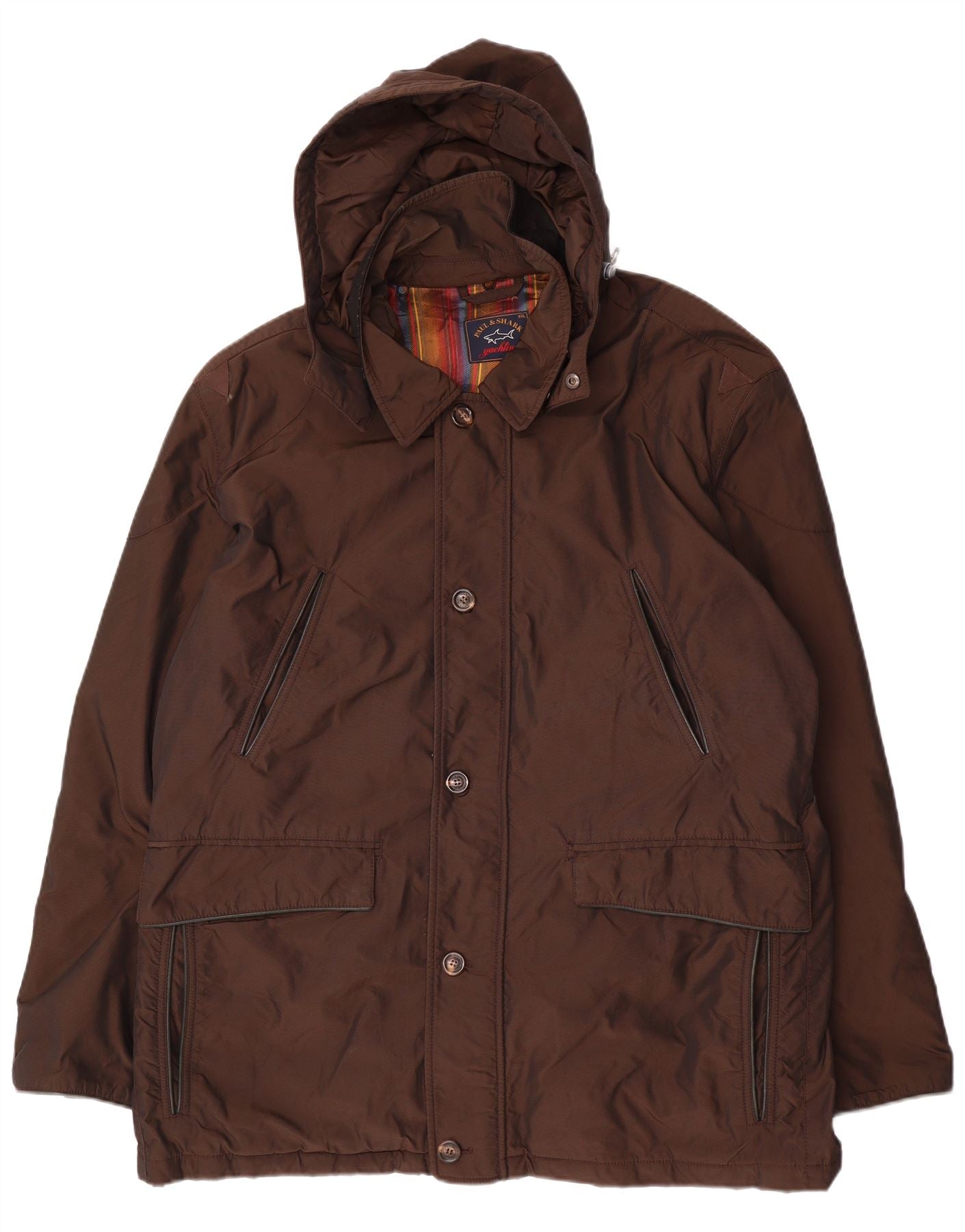 PAUL & SHARK Mens Hooded Utility Jacket UK 44 2XL Brown Nylon