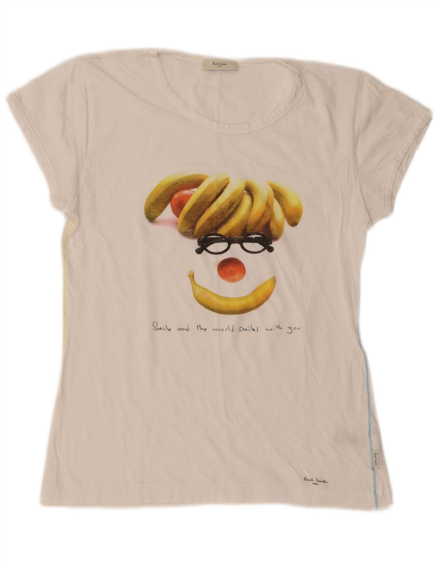 PAUL SMITH Womens Graphic T-Shirt Top UK 12 Medium White Cotton
