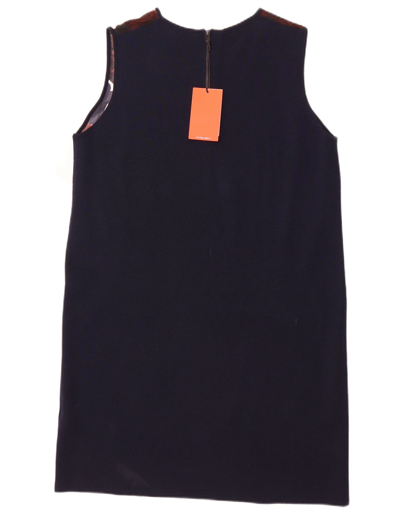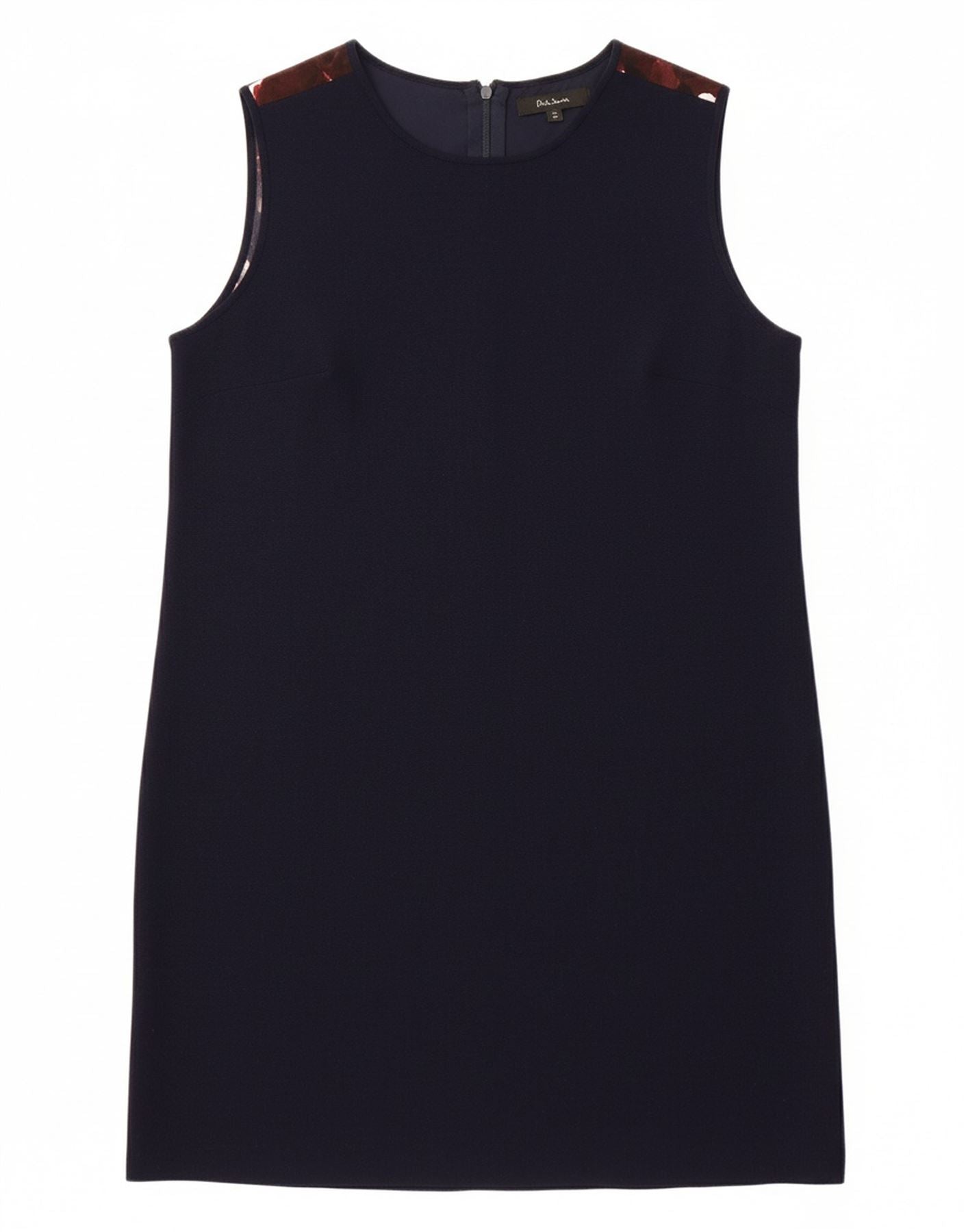 - AI Description: This Paul Smith womens shift dress is crafted from luxurious navy blue silk. The smooth material offers a fluid drape and elegant feel. It features a sophisticated round neckline and a sleek sleeveless design. A concealed zip closure ensures a clean back. The relaxed fit allows for comfortable movement and a contemporary silhouette. This dress offers effortless style.