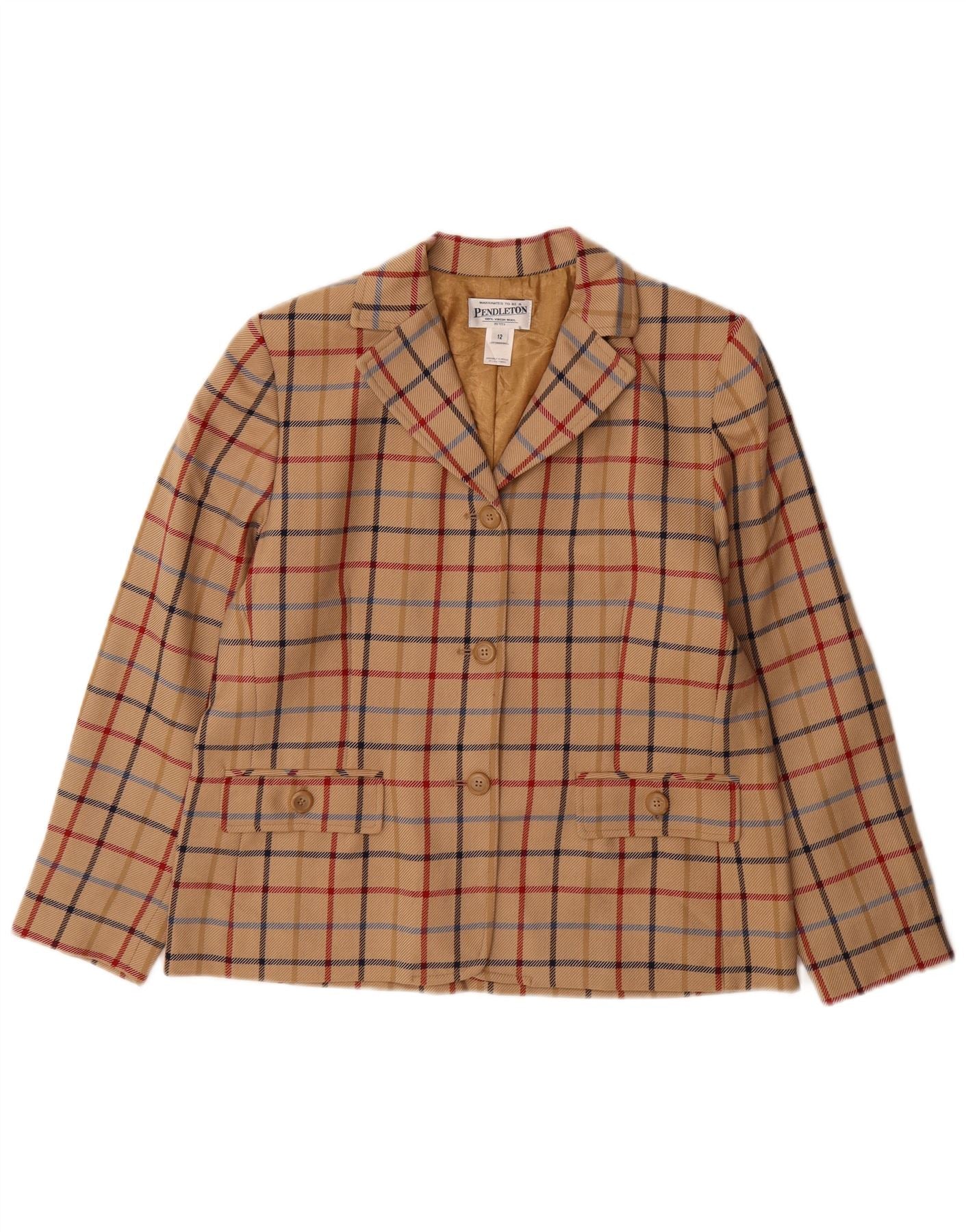 PENDLETON Womens Petite 3 Button Blazer Jacket US 12 Large Beige Check