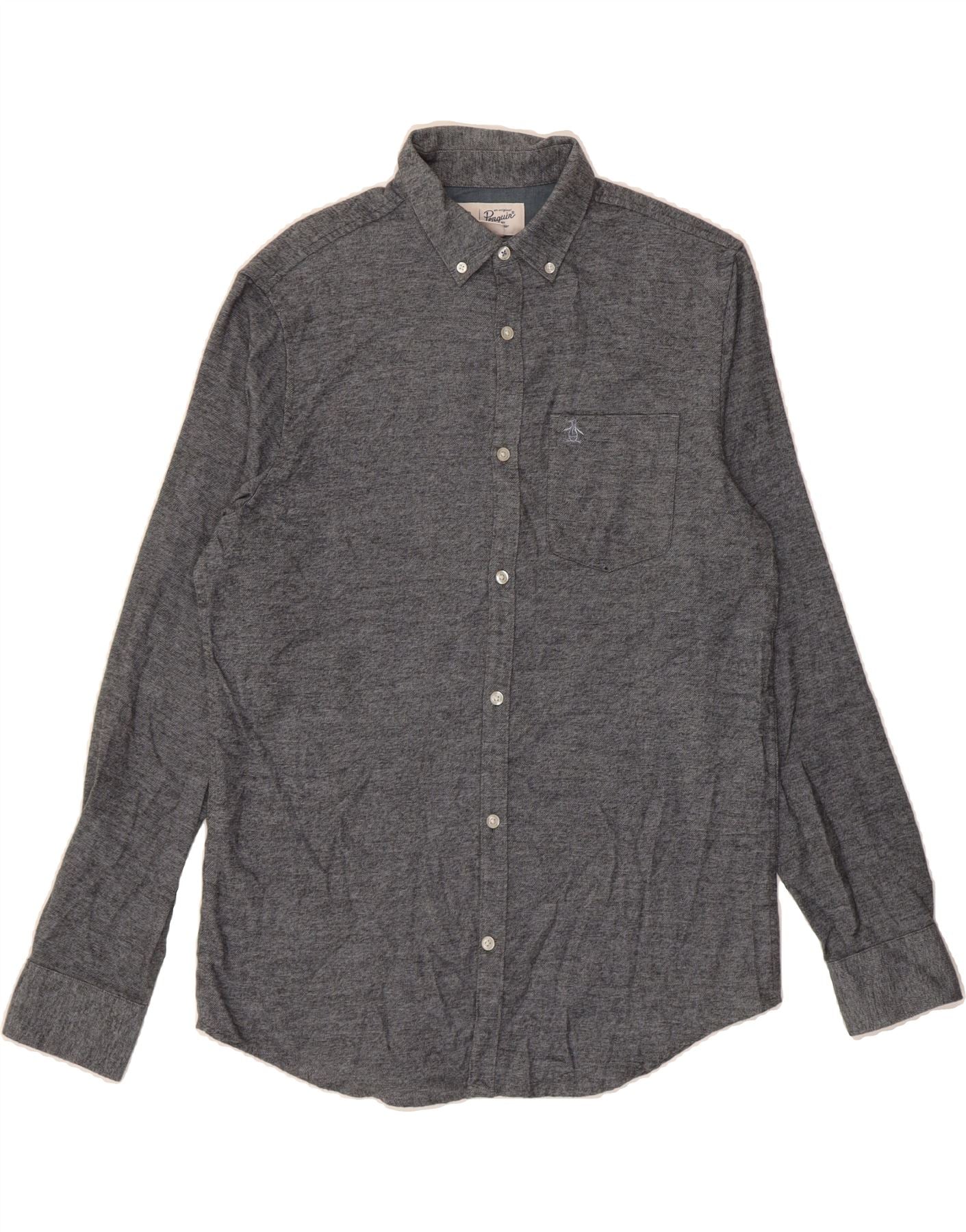 PENGUIN Mens Flannel Shirt Medium Grey Cotton