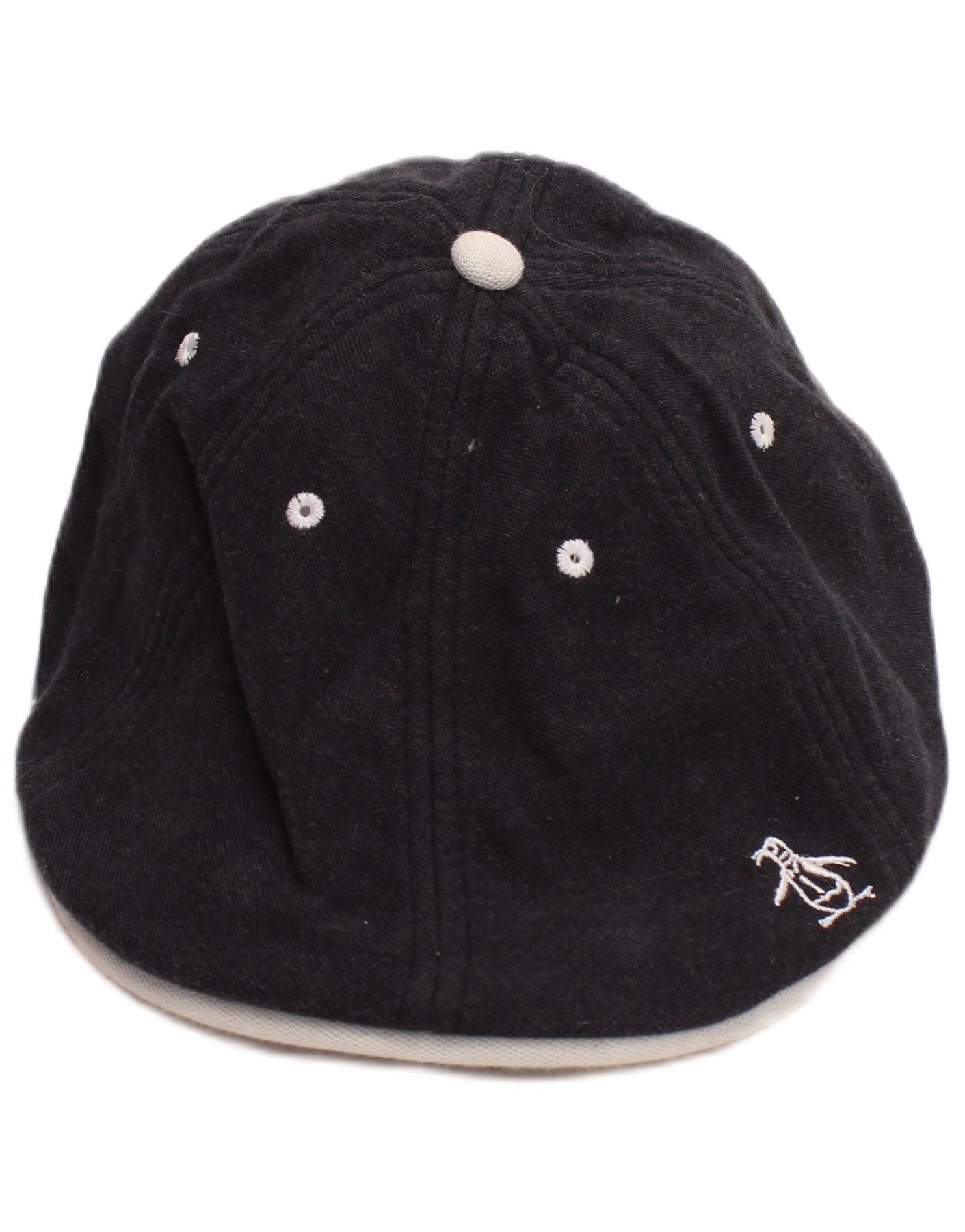 PENGUIN Mens Graphic Flat Cap Small/Medium Navy Blue Cotton Classic
