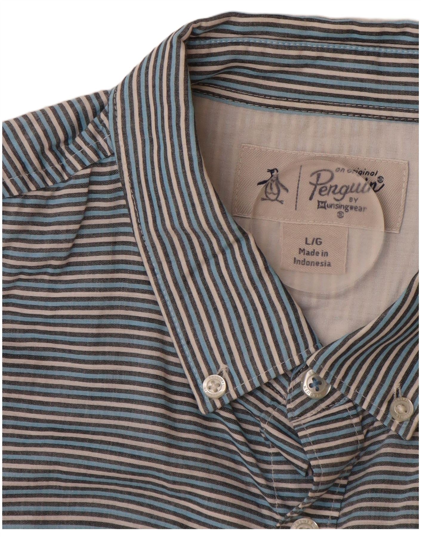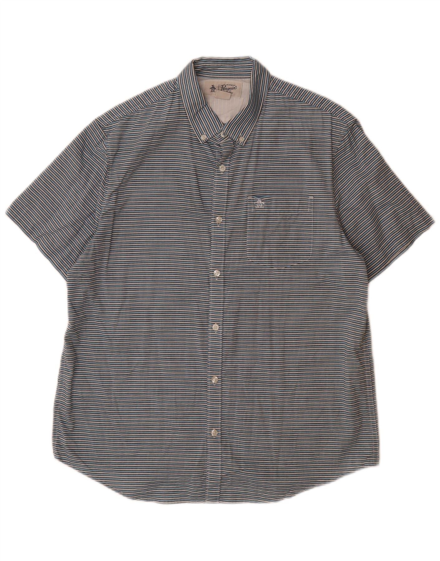 Cămașă cu mânecă scurtă pentru bărbați PENGUIN, bumbac mare, cu dungi, albastre