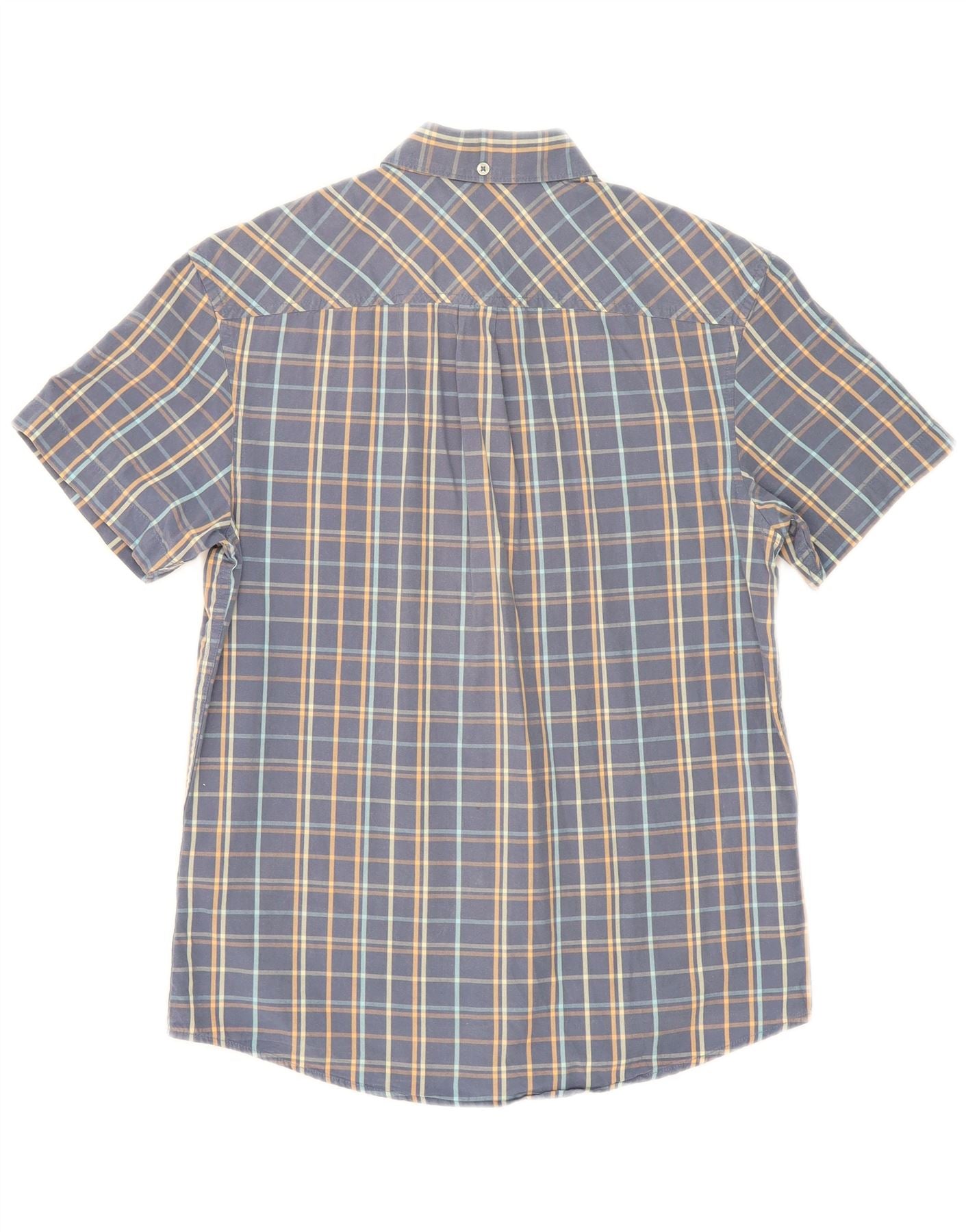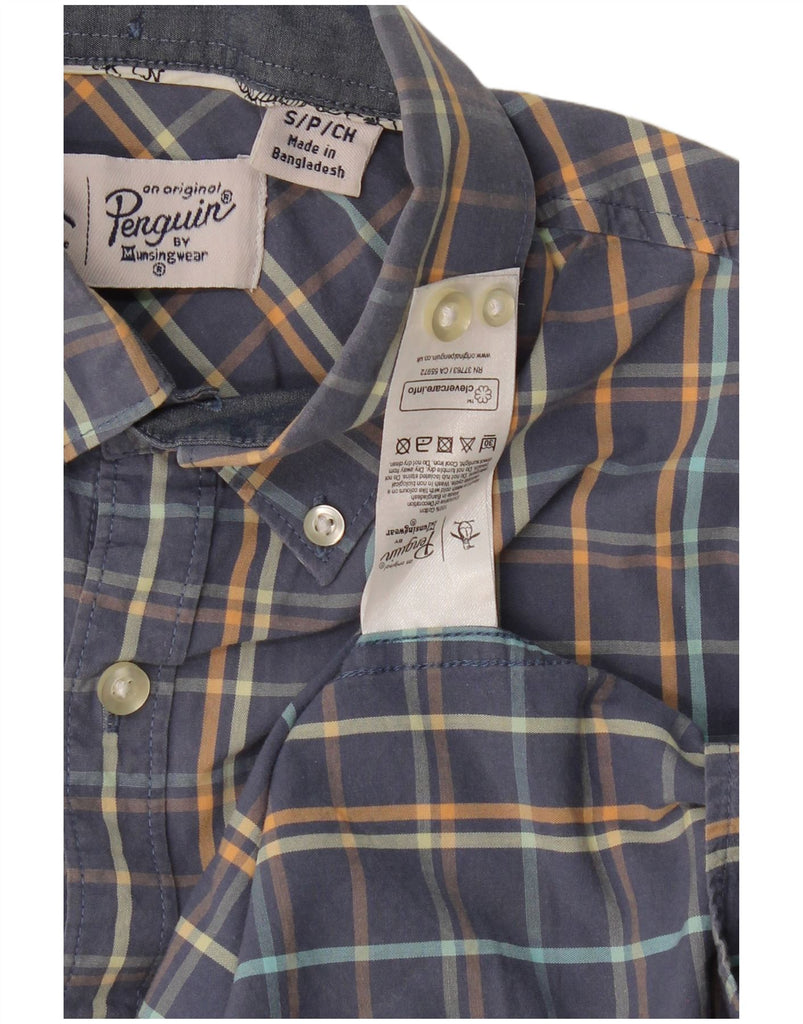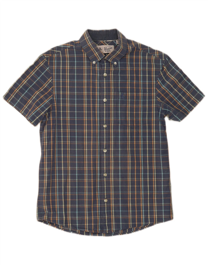 PENGUIN Mens Short Sleeve Shirt Small Navy Blue Plaid Cotton Classic
