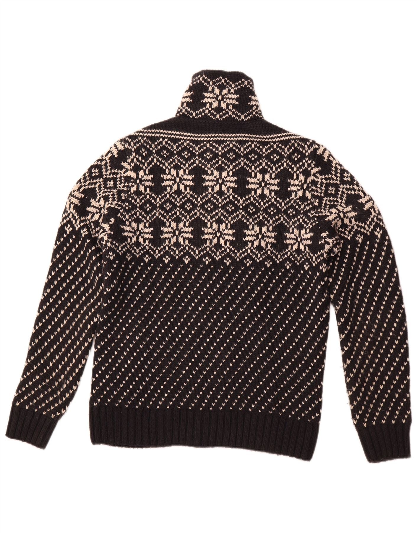 PEPE JEANS Mens Cardigan Sweater Large Black Fair Isle Acrylic