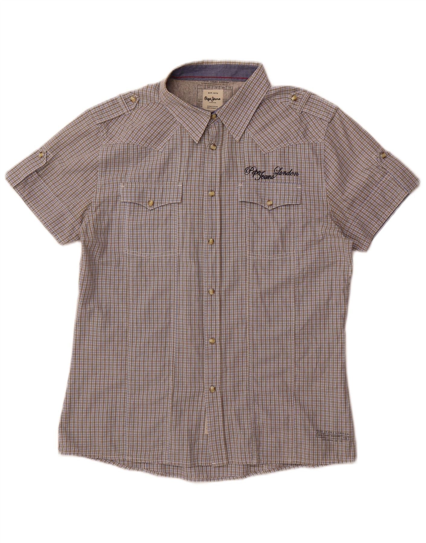Cămașă militară cu mânecă scurtă pentru bărbați PEPE Jeans, bumbac cu carouri gri XL