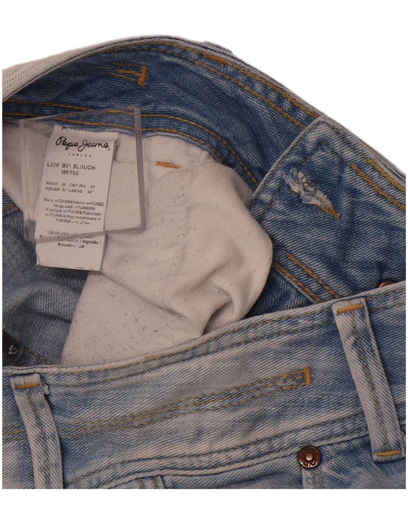 - AI Description: These PEPE Jeans women's wide leg jeans are crafted from blue denim, made from 100 percent cotton. They feature a low waist and a button closure for a classic look. The loose fit and wide leg design offer a relaxed silhouette. Cuffed hems add a stylish detail. Practical pockets complete the design, ensuring both comfort and a contemporary aesthetic.