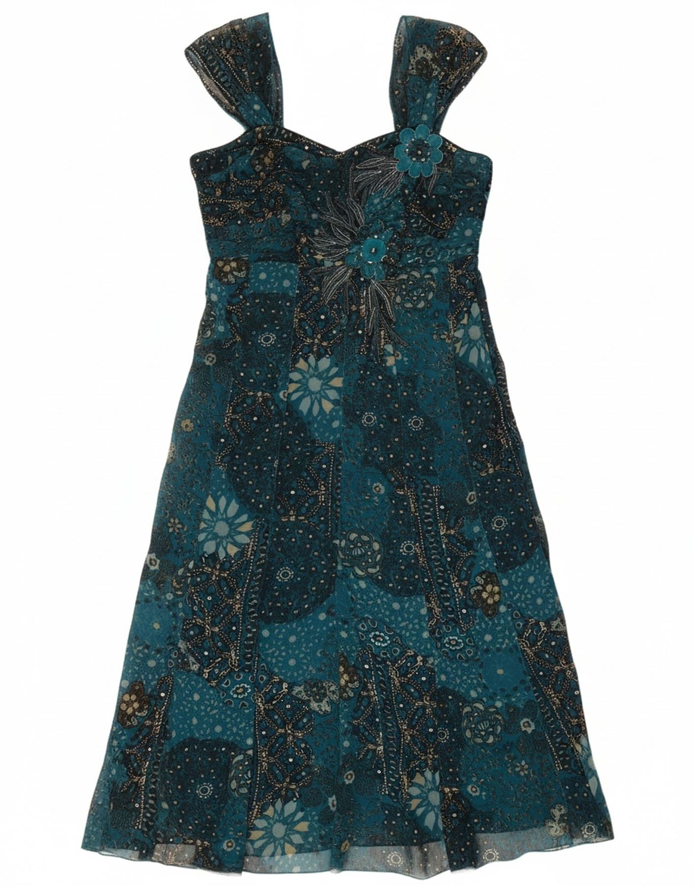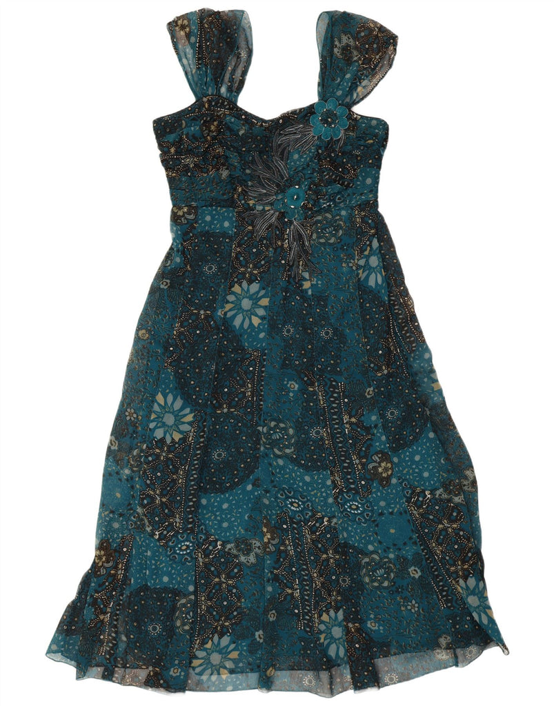 PER UNA Womens Sleeveless A-Line Dress UK 12 Medium Blue Floral Polyester