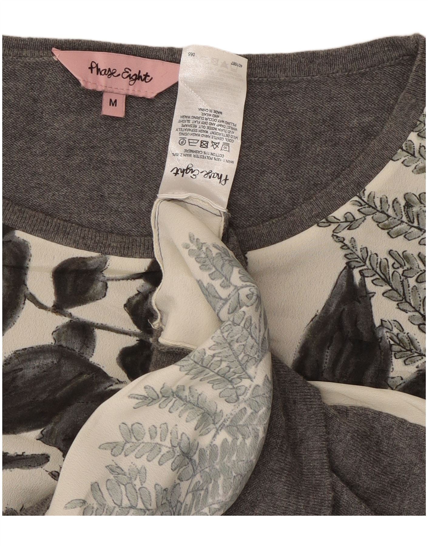 PHASE EIGHT Womens Oversized Blouse Top UK 14 Medium Grey Floral Polyester