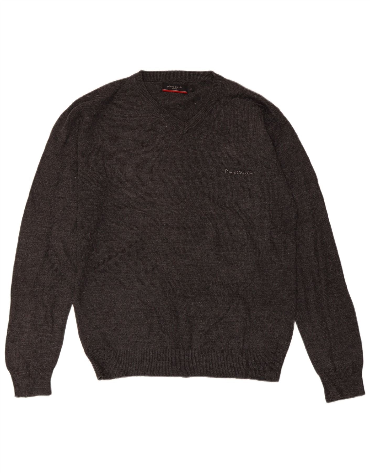 PIERRE CARDIN Pulover cu decolteu în V pentru bărbați, gri mediu acrilic