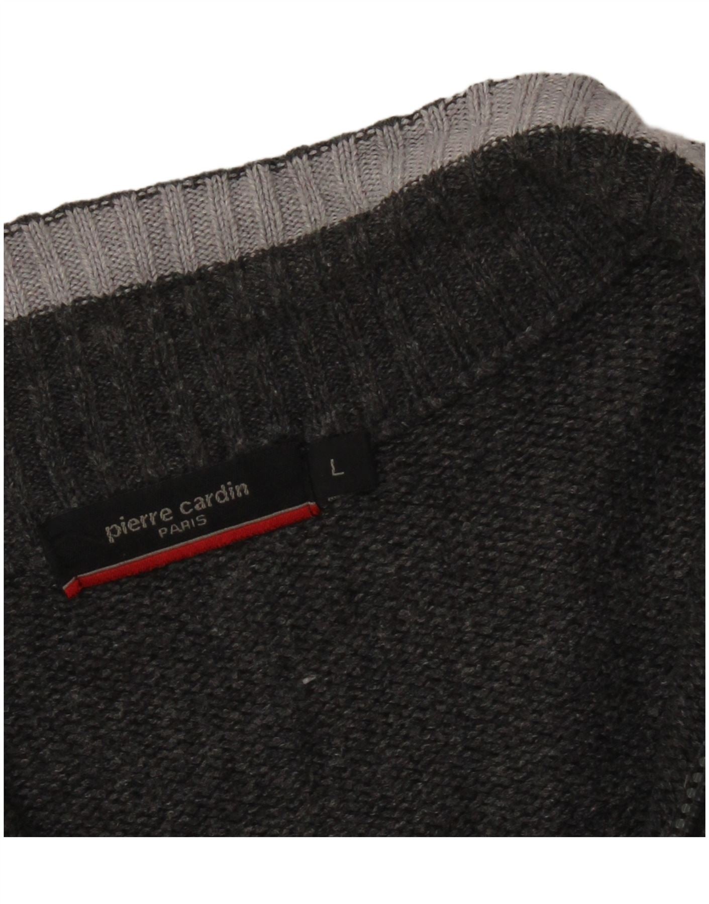 PIERRE CARDIN Pulover pentru bărbați, cu fermoar, cu gât, mare, cu dungi acrilice, gri