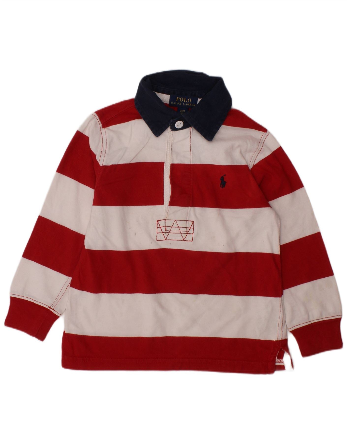 - AI Description: This Polo Ralph Lauren baby boys Rugby Polo Shirt is crafted from soft 100 cotton jersey. It features a classic collared neckline and a button closure for easy wear. The multicoloured striped pattern in red, white, and blue offers a vibrant, playful look. Long sleeves provide warmth, while the regular fit ensures comfort and breathability. A subtle logo accent adds a signature touch to this classic style.