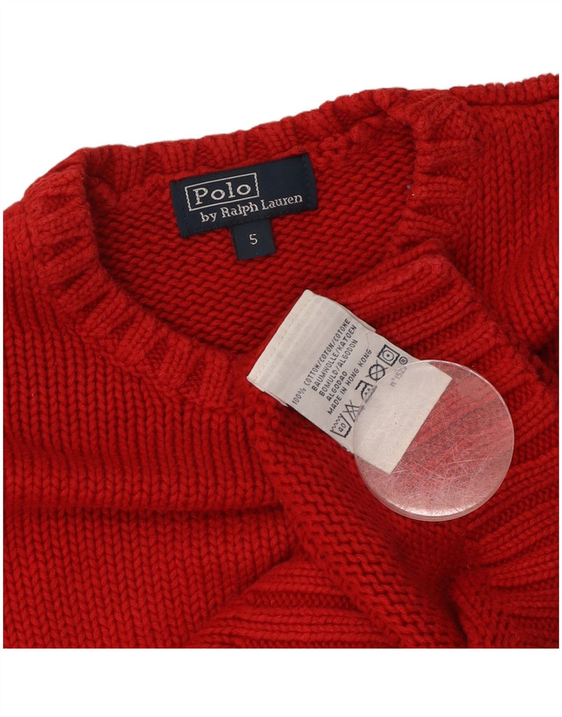 POLO RALPH LAUREN Boys Crew Neck Jumper Sweater 4-5 Years Red Cotton