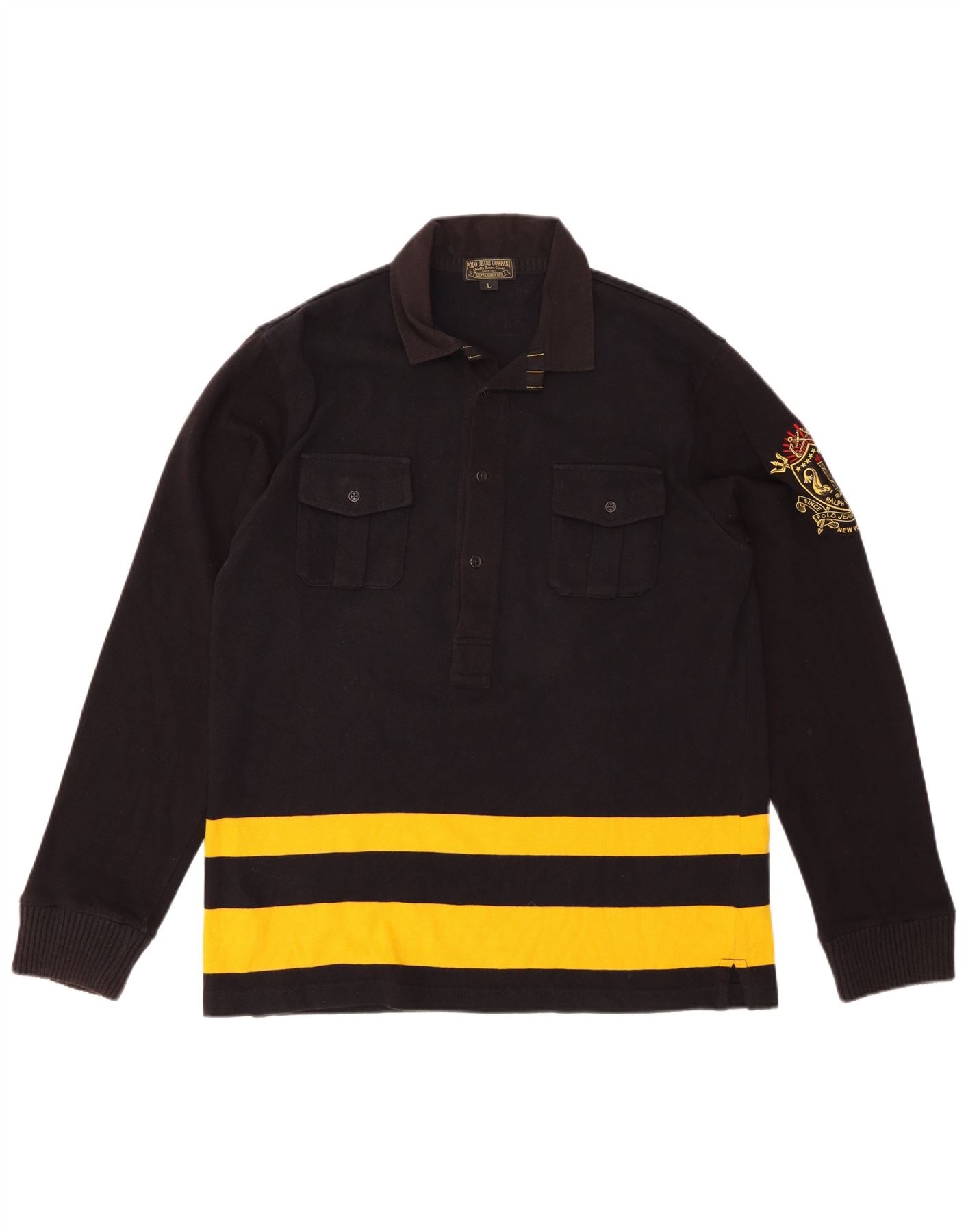 POLO RALPH LAUREN Tricou polo rugby cu mânecă lungă pentru bărbați, cu dungi mari, negre