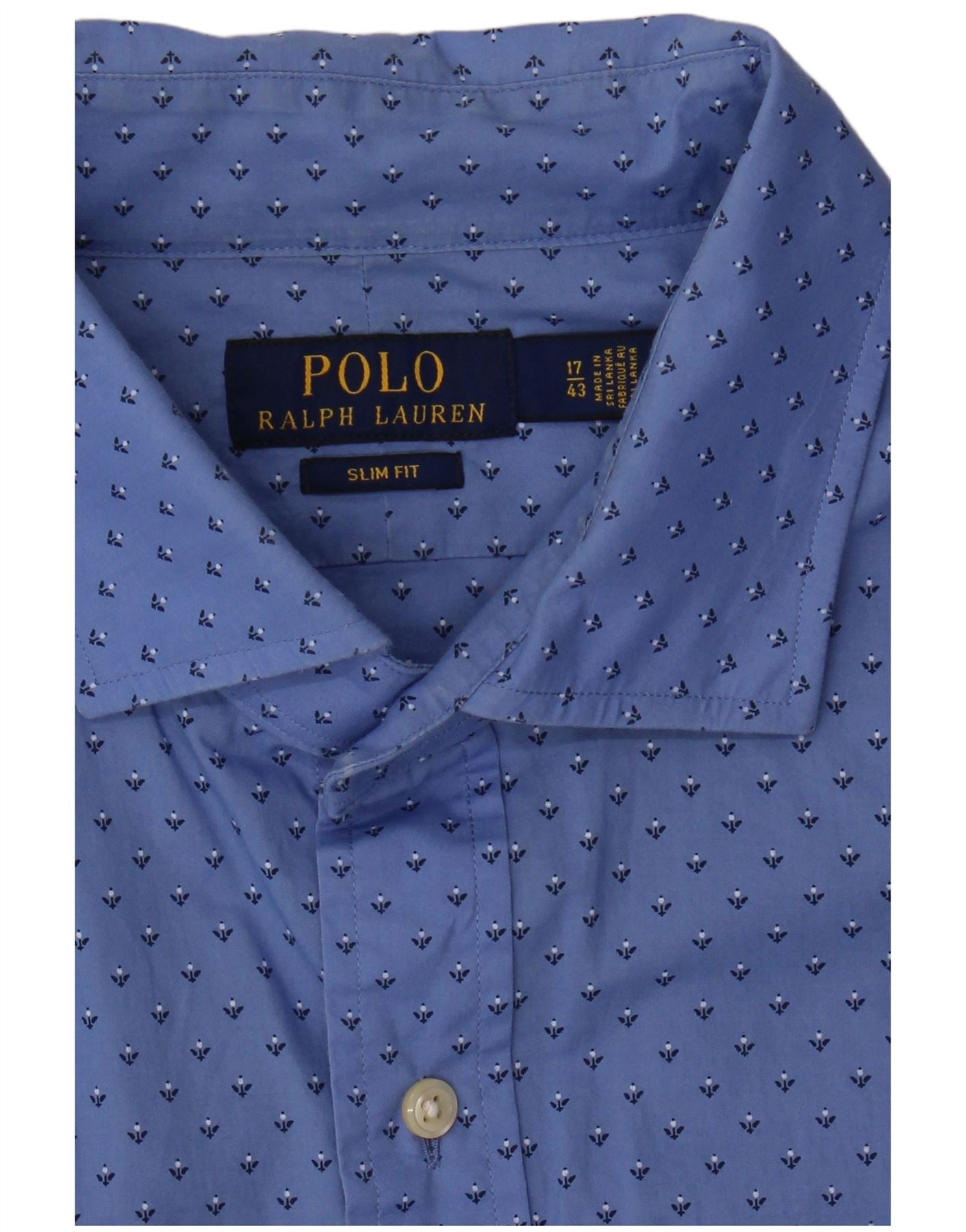 POLO RALPH LAUREN Mens Slim Fit Shirt Size 17 XL Blue Floral Cotton