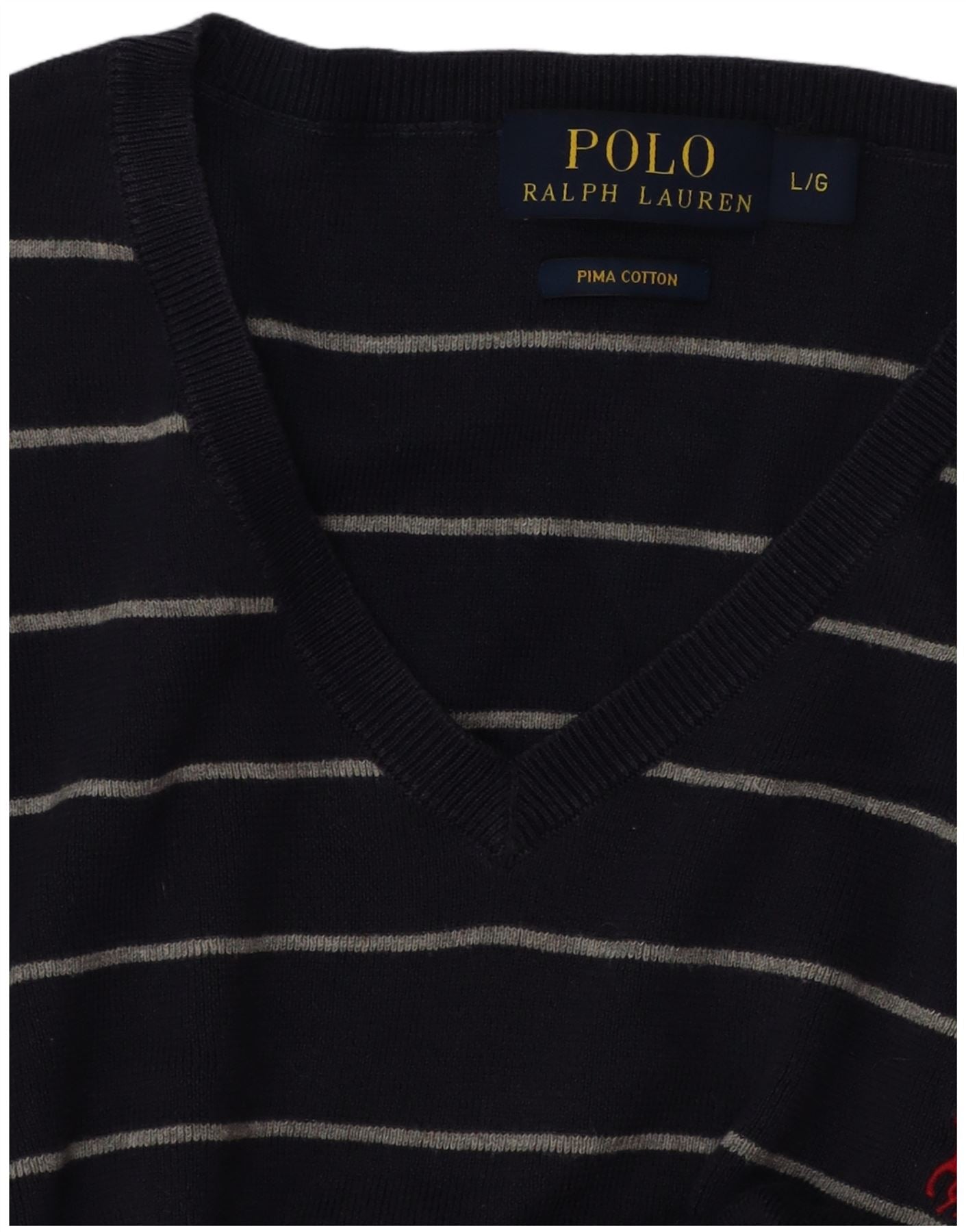 POLO RALPH LAUREN Pulover cu decolteu în V pentru bărbați, mare, bleumarin, cu dungi