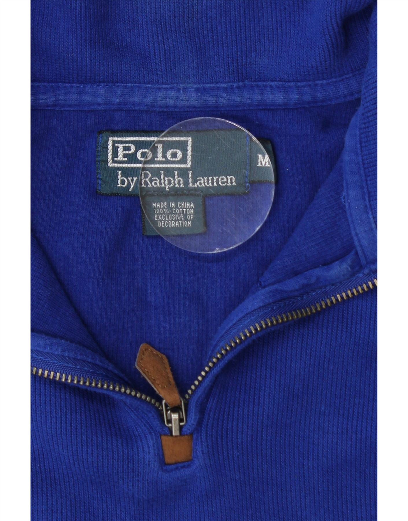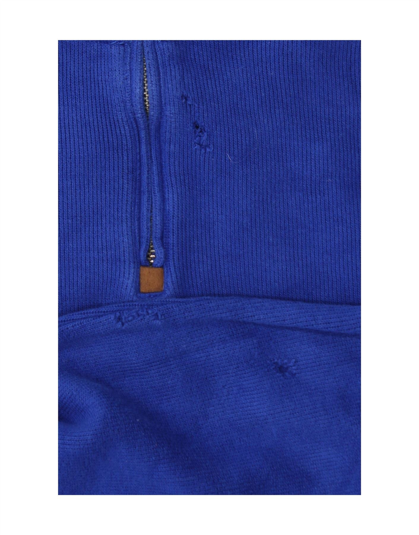 POLO RALPH LAUREN Mens Zip Neck Jumper Sweater Medium Blue Cotton