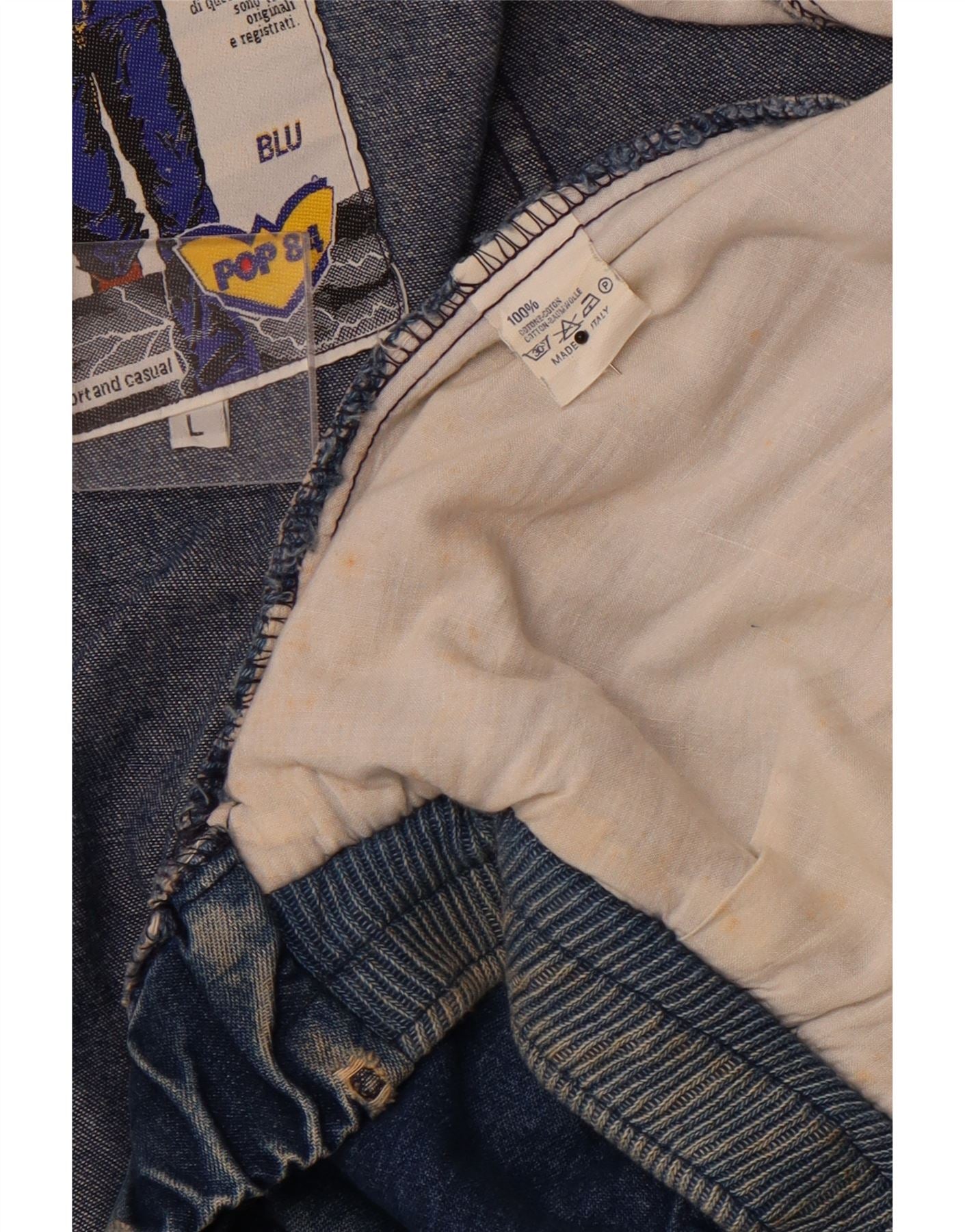 POP 84 Jachetă de blugi pentru bărbați UK 40 Bumbac mare cu dungi albastre