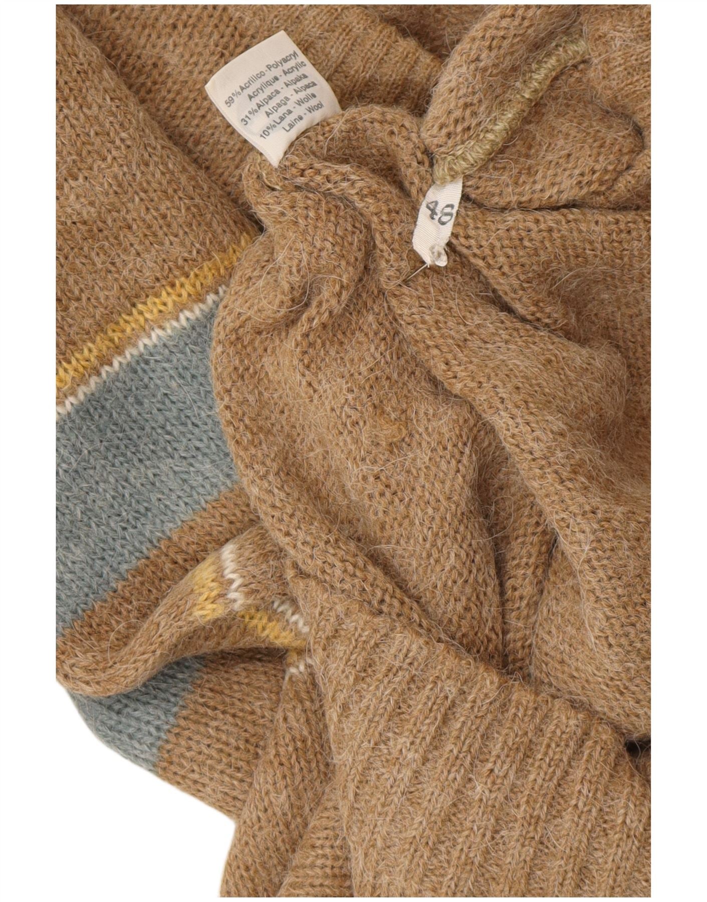 - Descriere AI: Acest pulover Portobellos pentru bărbați cu decolteu triplu este realizat dintr-un amestec moale de alpaca acrilică și lână. Are un gât rotund clasic și mâneci lungi cu mansete. Potrivirea obișnuită asigură o purtare confortabilă. Dungile orizontale în albastru și galben adaugă un model retro distinctiv pe piept și brațe.