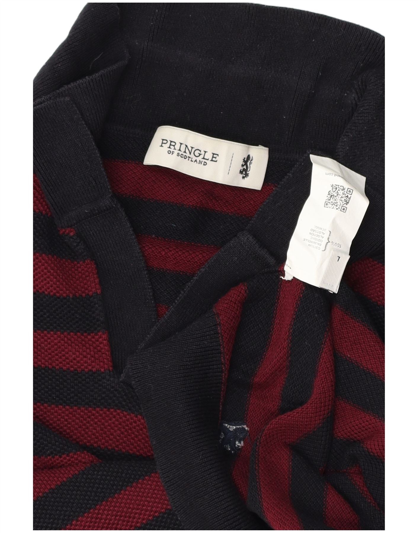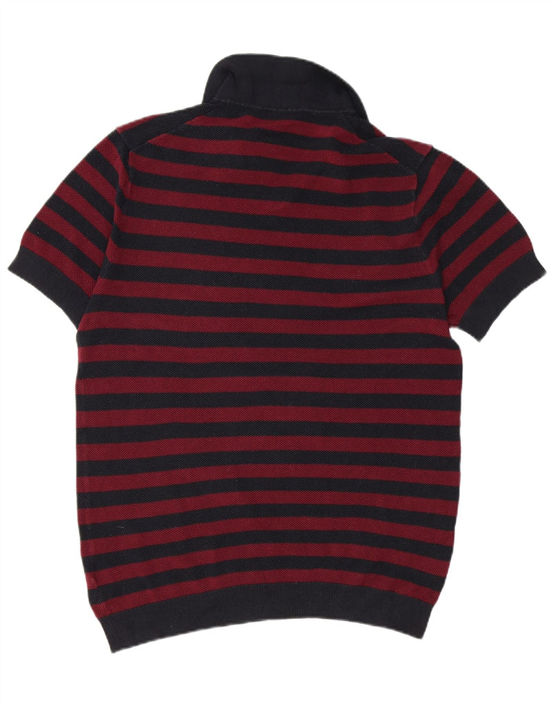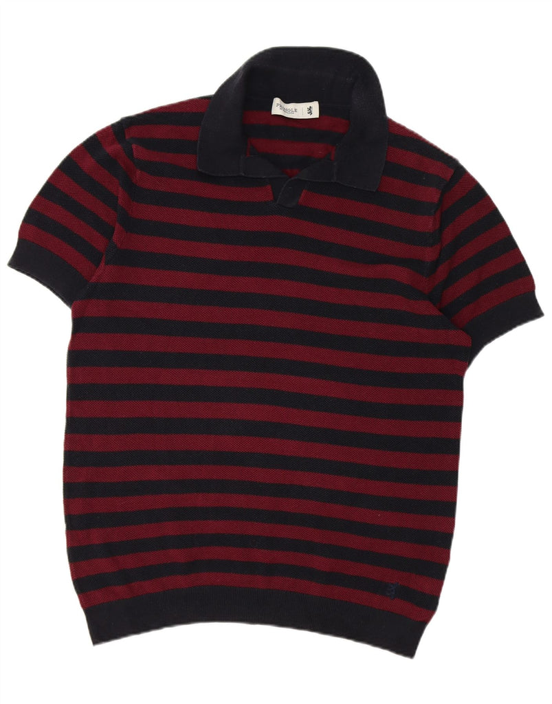 PRINGLE Mens Short Sleeve Polo Neck Jumper Sweater Large Navy Blue Striped