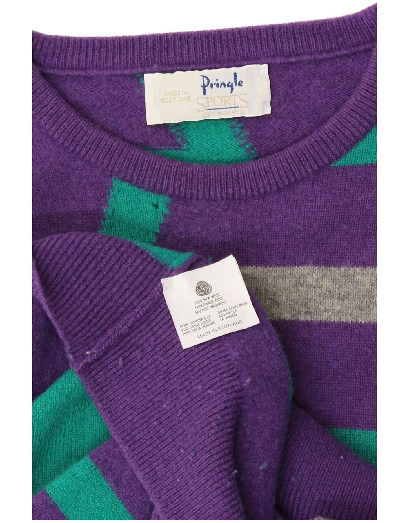 PRINGLE Womens Crew Neck Jumper Sweater UK 16 Large Purple Striped