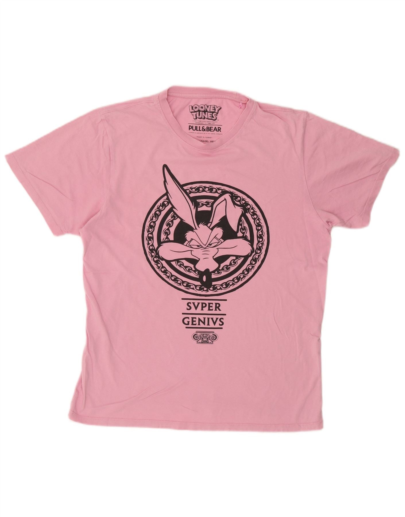 PULL & BEAR Mens Looney Tunes Graphic T-Shirt Top Medium Pink