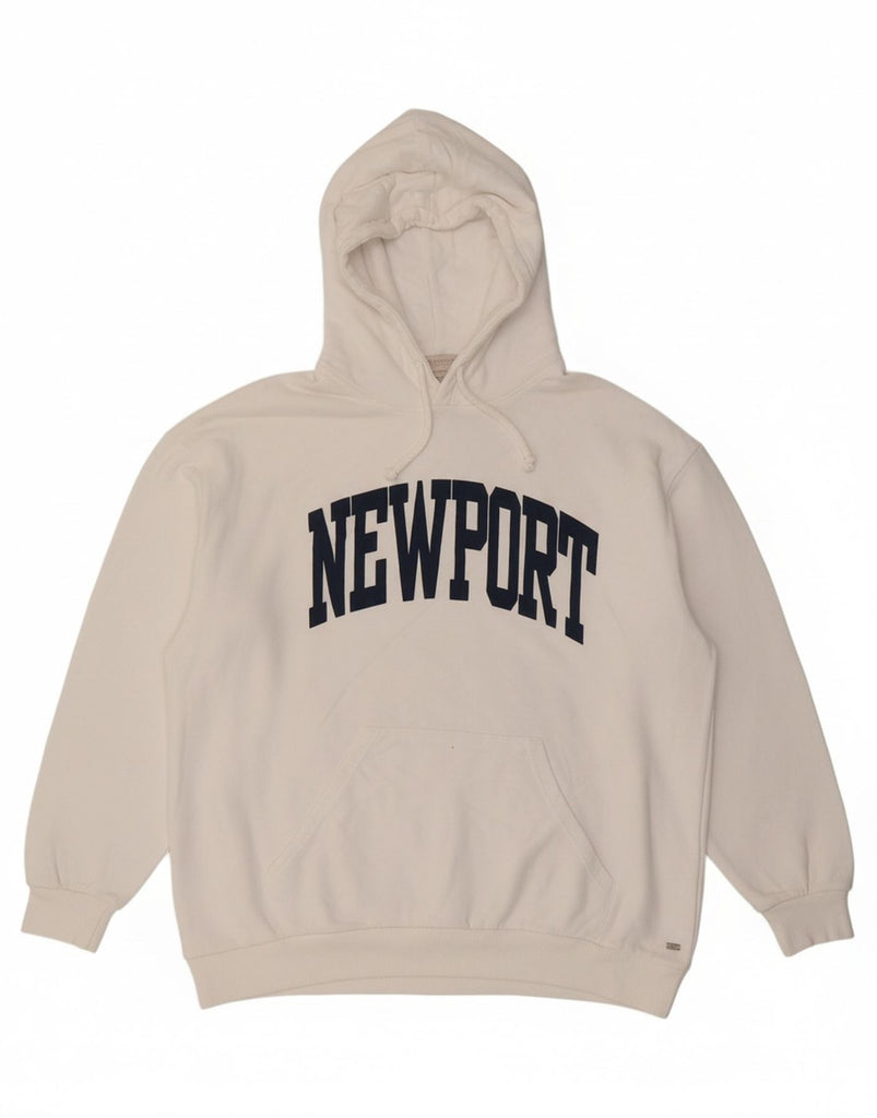 PULL & BEAR Mens Loose Fit Graphic Hoodie Jumper Medium White Cotton