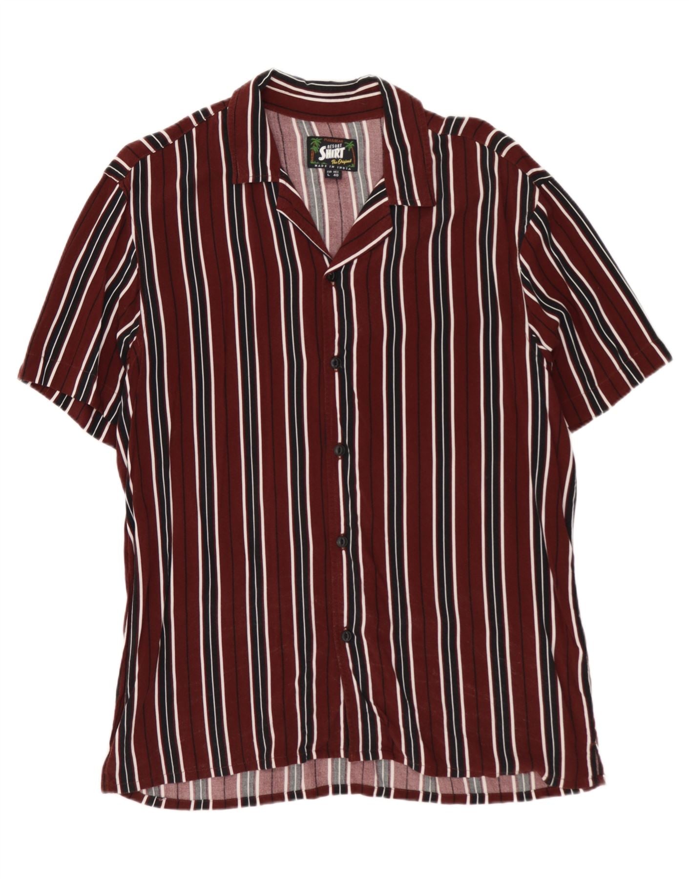 Cămașă cu mânecă scurtă pentru bărbați PULL & BEAR, viscoză mare în dungi, bordeaux