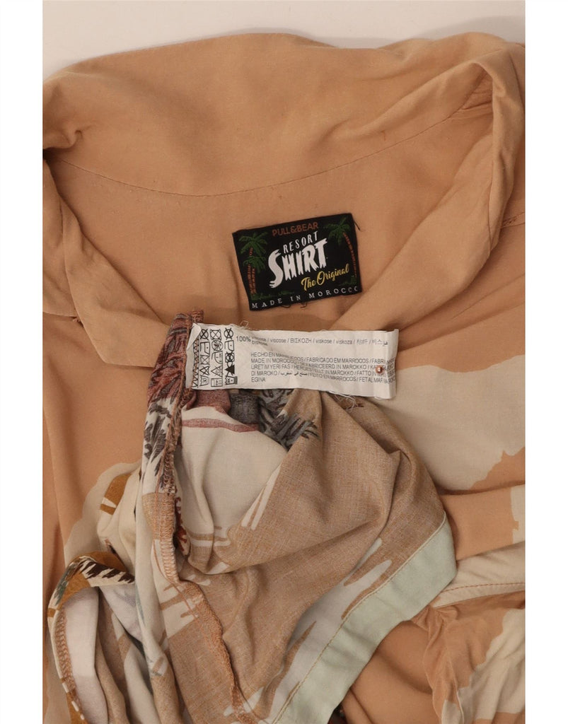 PULL & BEAR Mens Short Sleeve Shirt Medium Pink Viscose Hawaiian