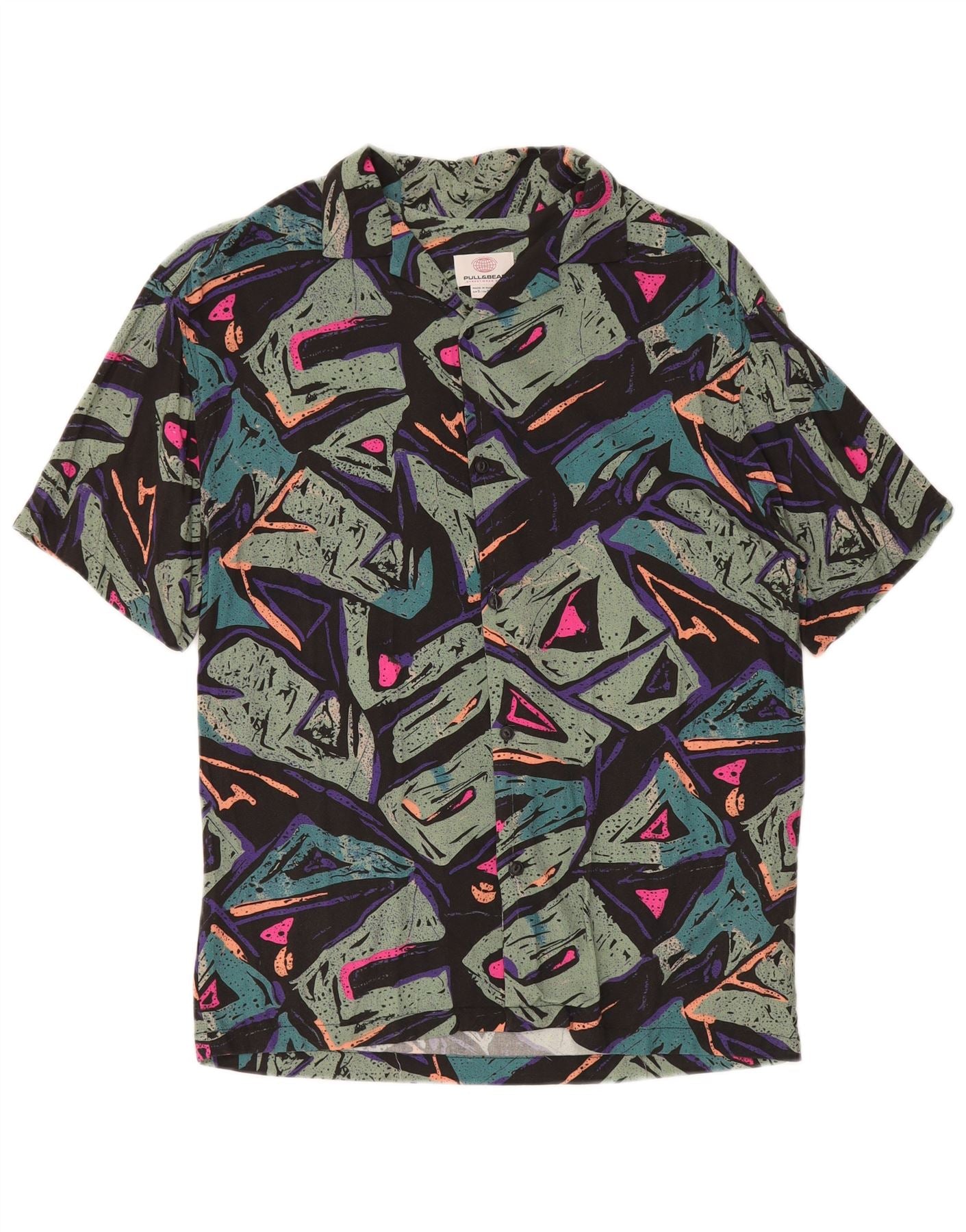 PULL & BEAR Mens Short Sleeve Shirt Small Multicoloured Geometric Viscose