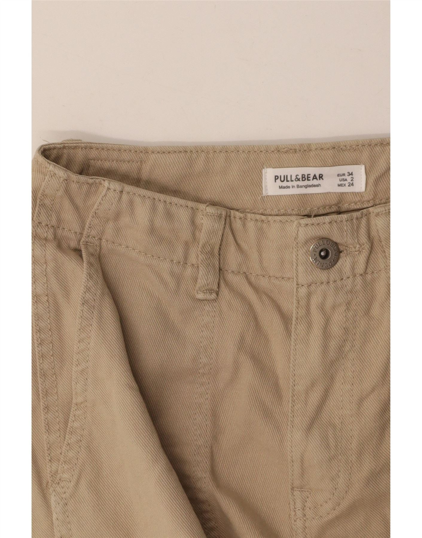 PULL & BEAR Womens Straight Cargo Trousers EU 34 2XS W24 L33 Beige Cotton