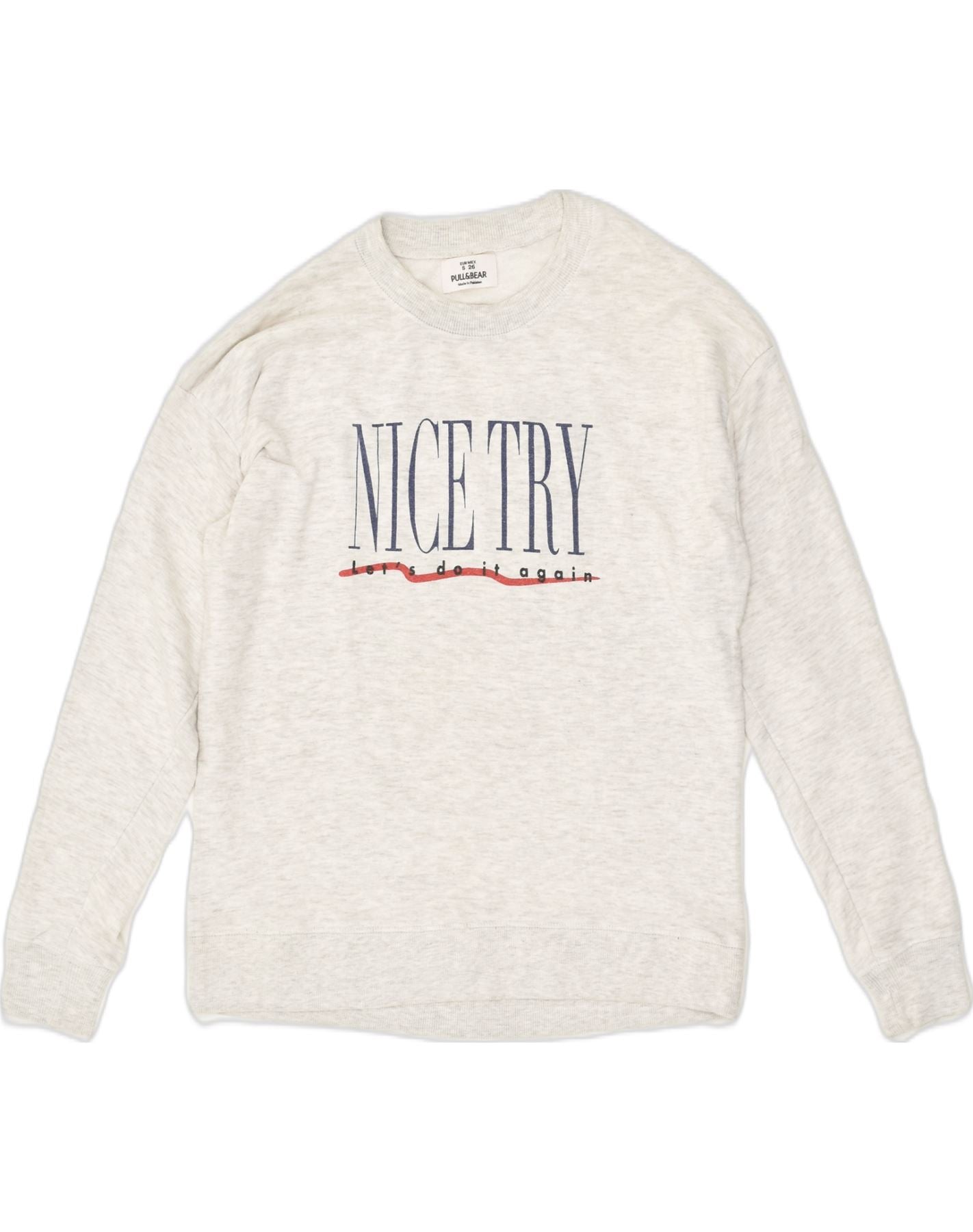 Pulover pentru femei Pull & BEAR, cu croiala lejeră, cu grafică, 10, gri mic