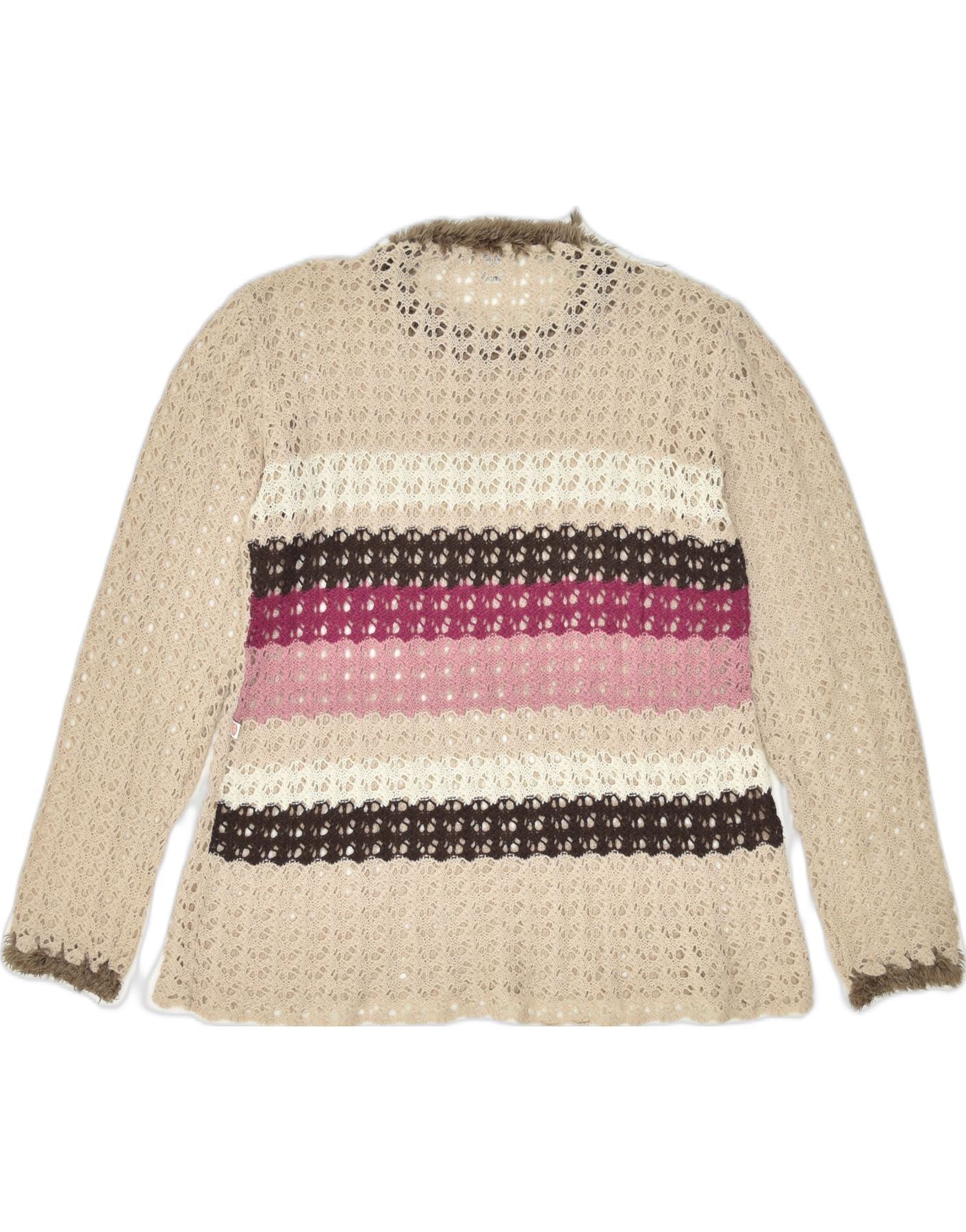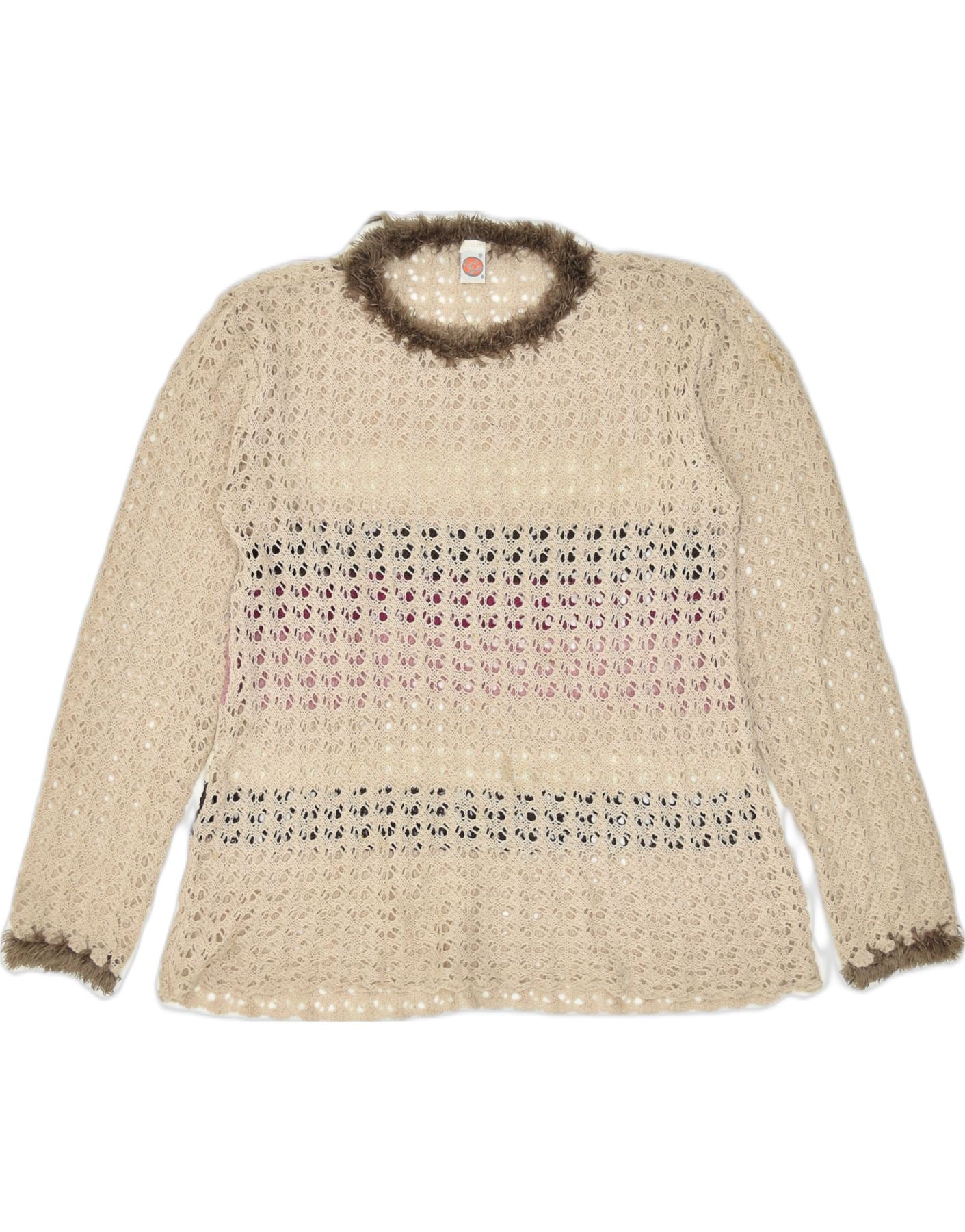 Pulover VINTAGE pentru femei cu decolteu rotund, pulover UK 20 2XL, bej, nailon