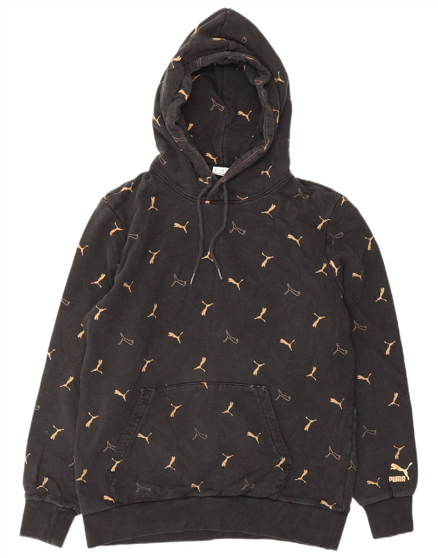 Pulover PUMA pentru bărbați cu glugă grafică, bumbac mediu negru