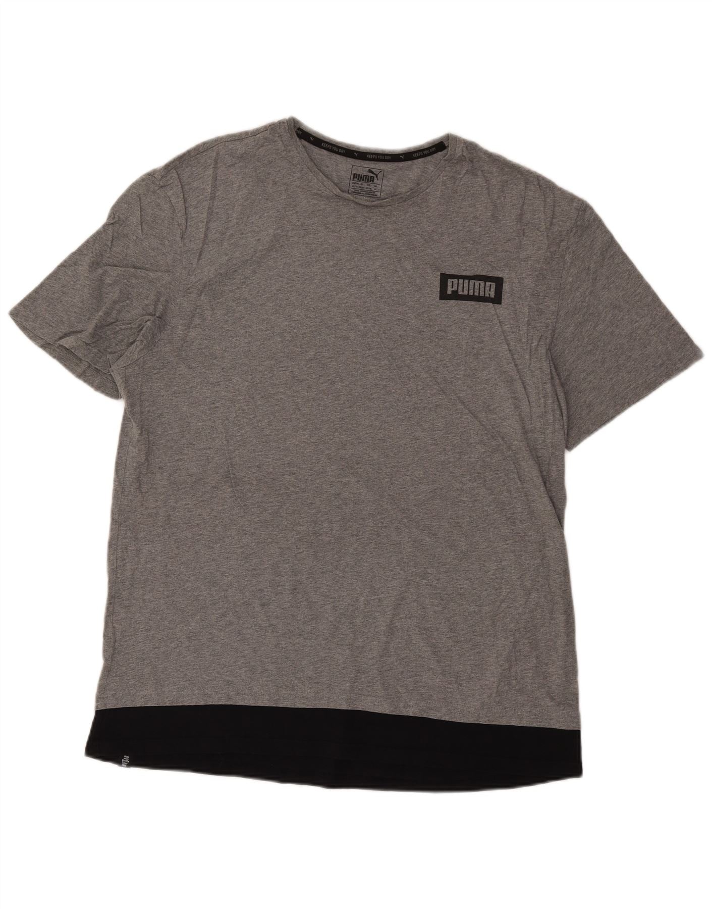 - Descriere AI: Acest tricou cu grafic Puma pentru bărbați este confecționat din țesătură moale de jerseu gri. Are un decolteu rotund clasic și mâneci scurte confortabile. Potrivirea regulată asigură o mișcare ușoară. Un panou negru distinct accentuează tivul. Sigla Puma este afișată vizibil pe față și pe spate, adăugând un detaliu sportiv. Acest top respirabil și ușor oferă un confort excelent.