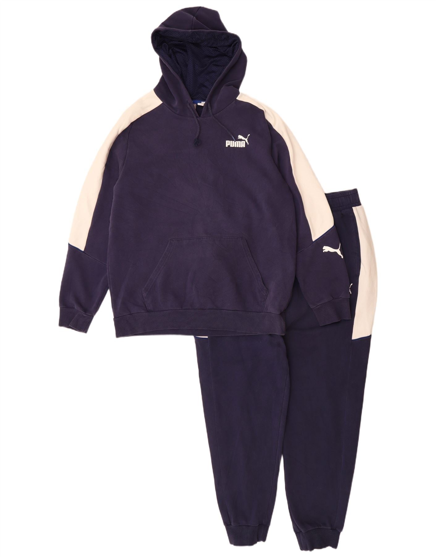 Trening complet pentru bărbați PUMA, cu glugă, mare, albastru, bumbac color bloc