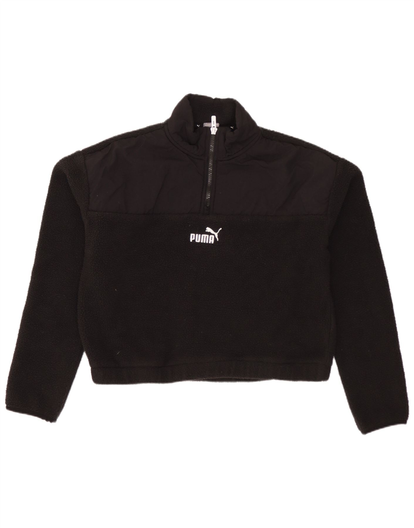 Pulover PUMA pentru femei Crop oversize, cu fermoar și gât, fleece UK 10 Small Negru