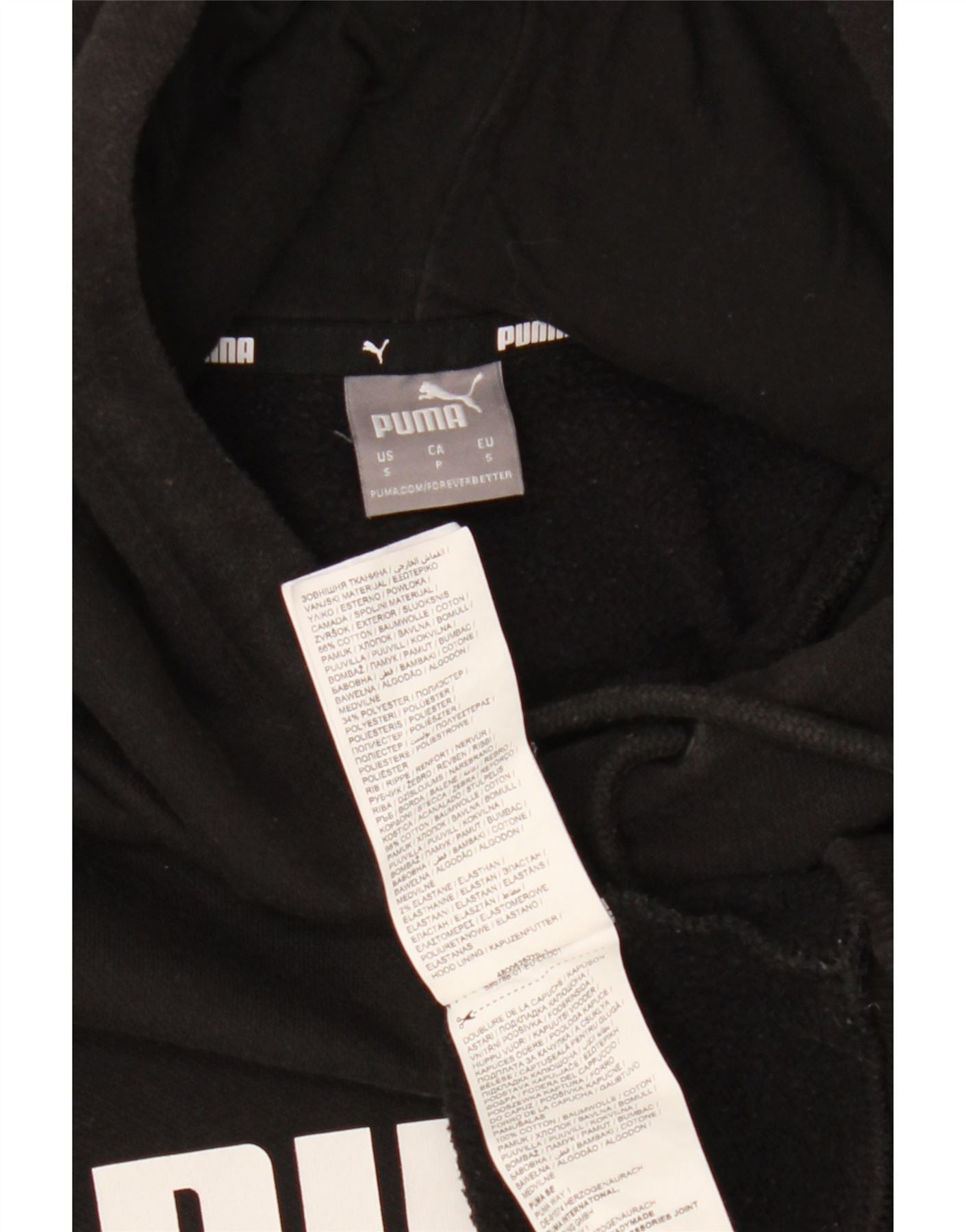 Pulover cu glugă cu grafic PUMA pentru femei UK 10 mic, negru, bumbac