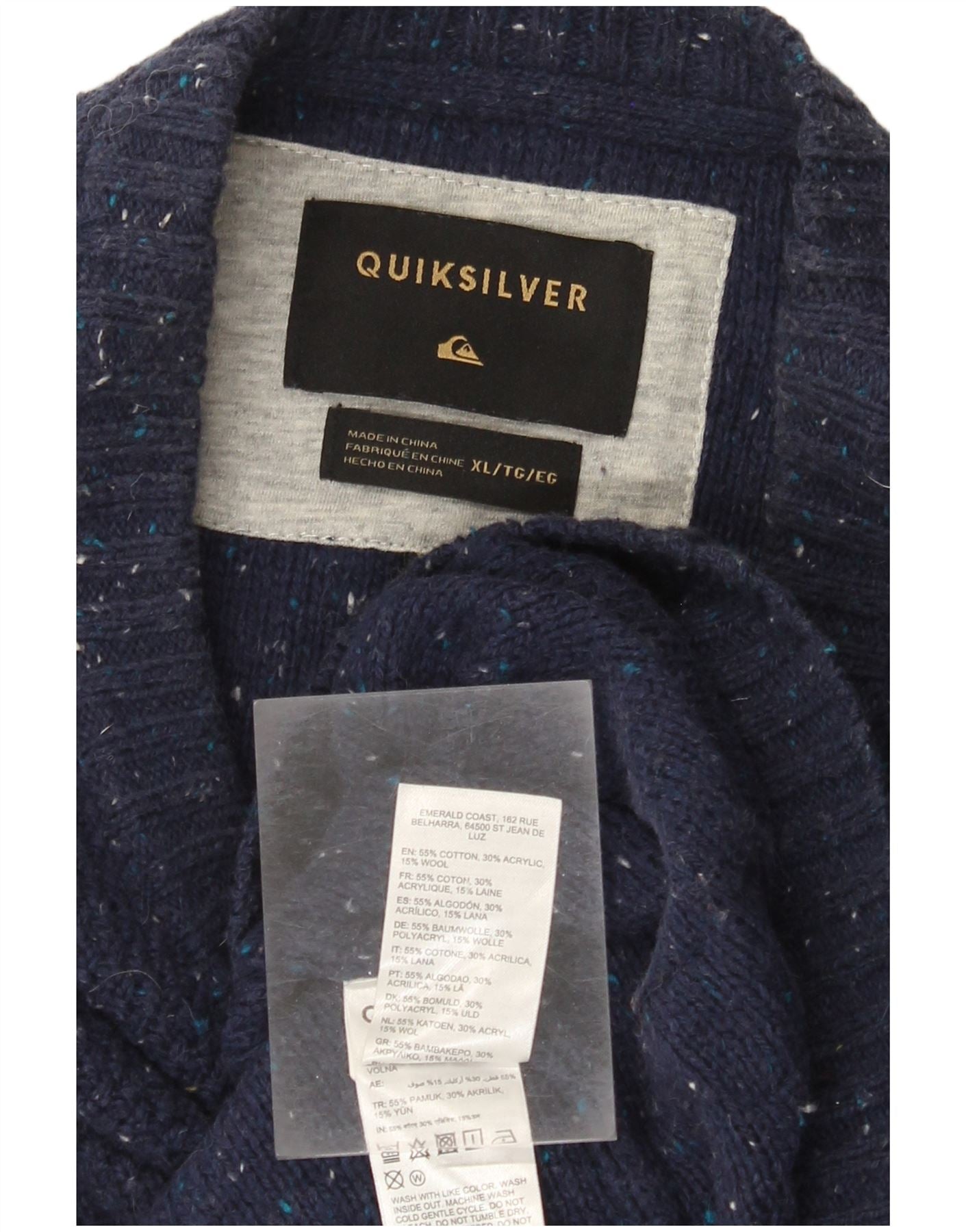 Pulover QUIKSILVER pentru bărbați, cu gât roșu, XL, bumbac cu pete albastre