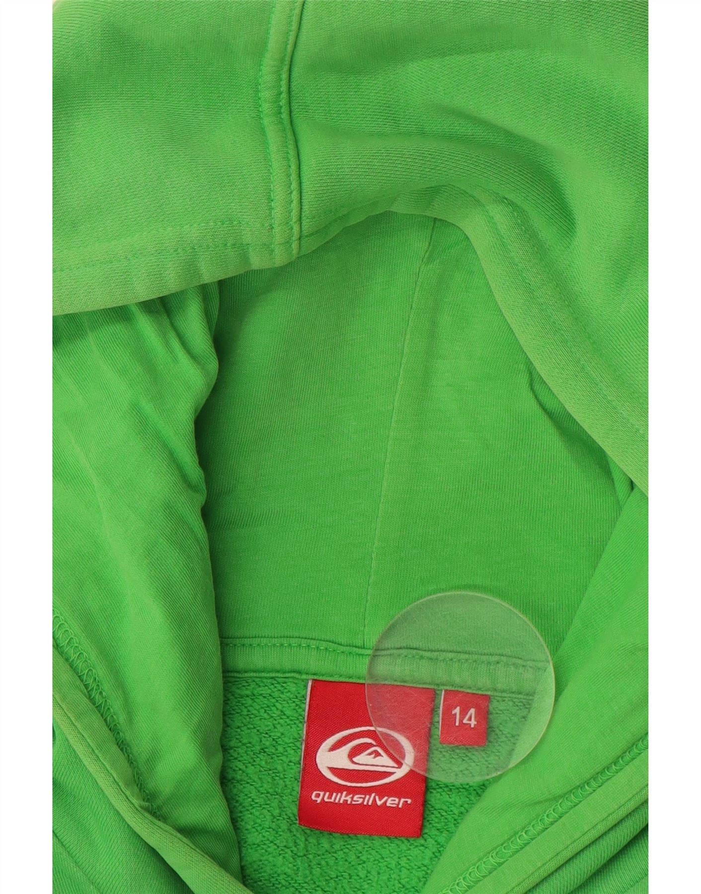 QUIKSILVER Womens Graphic Hoodie Jumper UK 14 Medium Green Cotton