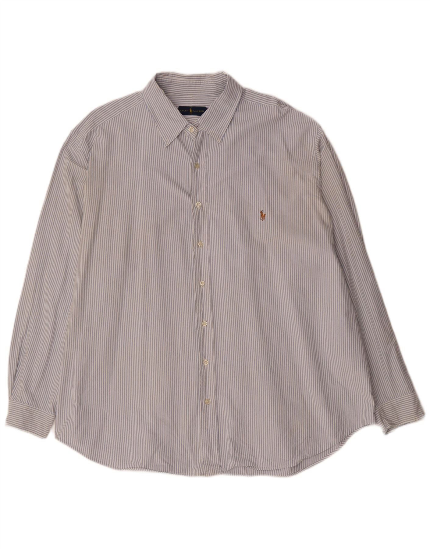 RALPH LAUREN Mens Big Shirt 2XL Blue Pinstripe Cotton