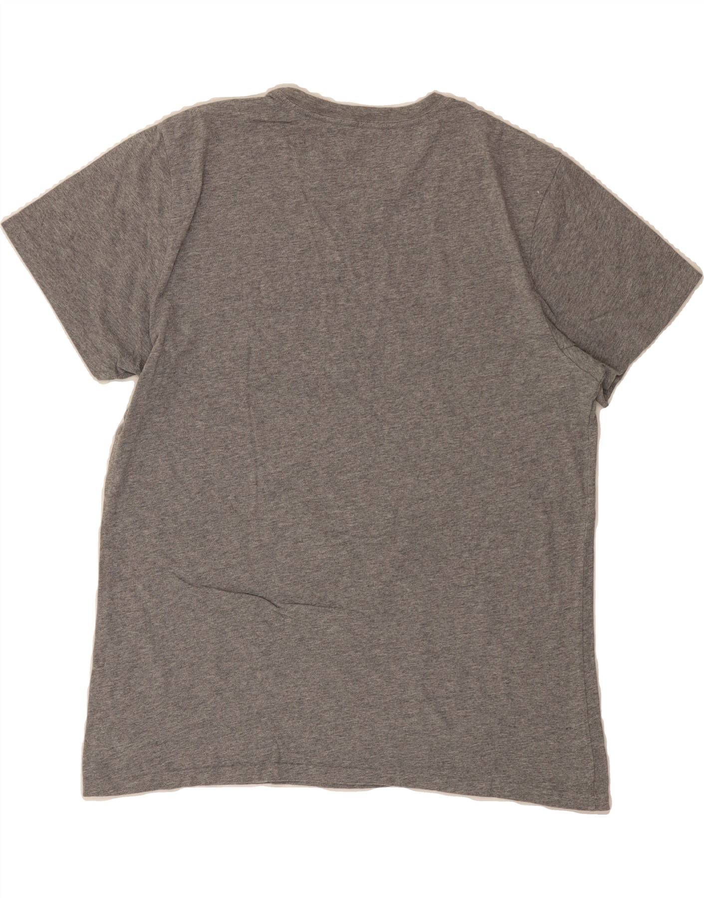 - AI Description: This Polo Jeans Company graphic T-shirt is a stylish addition to any man's wardrobe. Crafted from 100% cotton knit, its regular fit and short sleeves ensure comfort. The grey tee features a classic round neck and a pullover closure. An eye-catching logo accent adds a touch of branding. This pre-owned item is in excellent condition and is a size large.