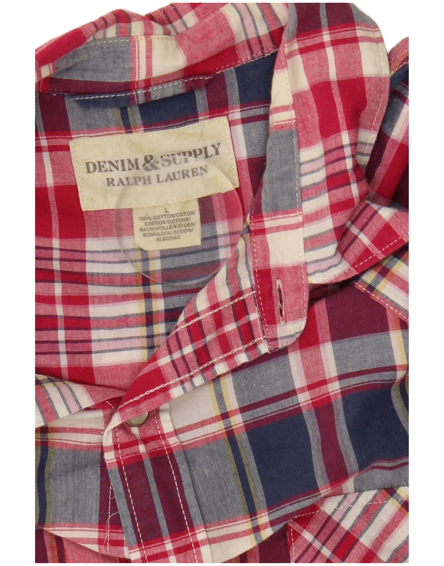 RALPH LAUREN Mens Short Sleeve Shirt Large Red Check Cotton