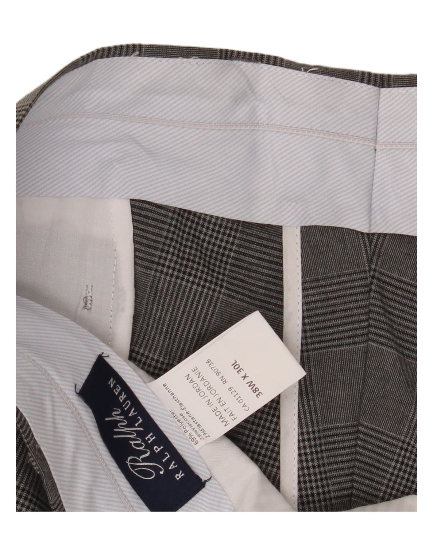 RALPH LAUREN Mens Slim Suit Trousers W38 L30 Grey Check Polyester